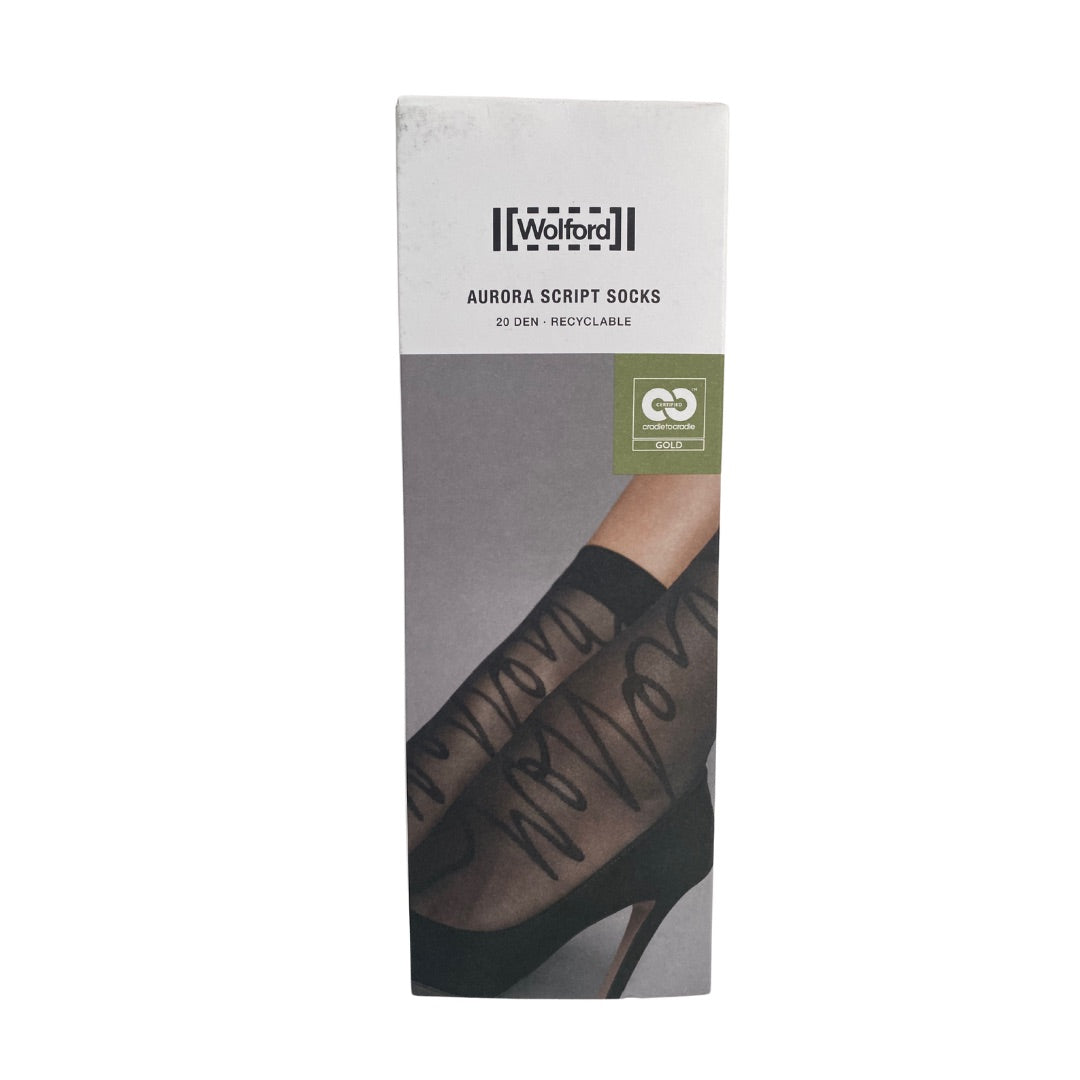 Wolford Aurora Script Sheer Ankle Socks 20 Denier Black - New