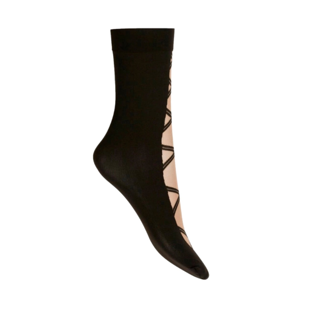 Wolford Sheer Opaque Lacing Ankle Socks Black - New