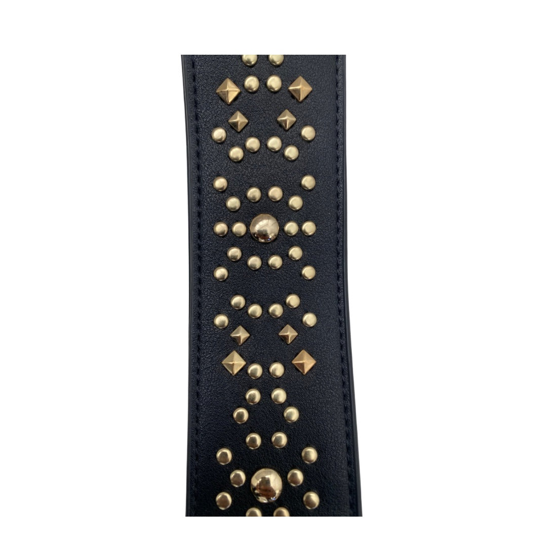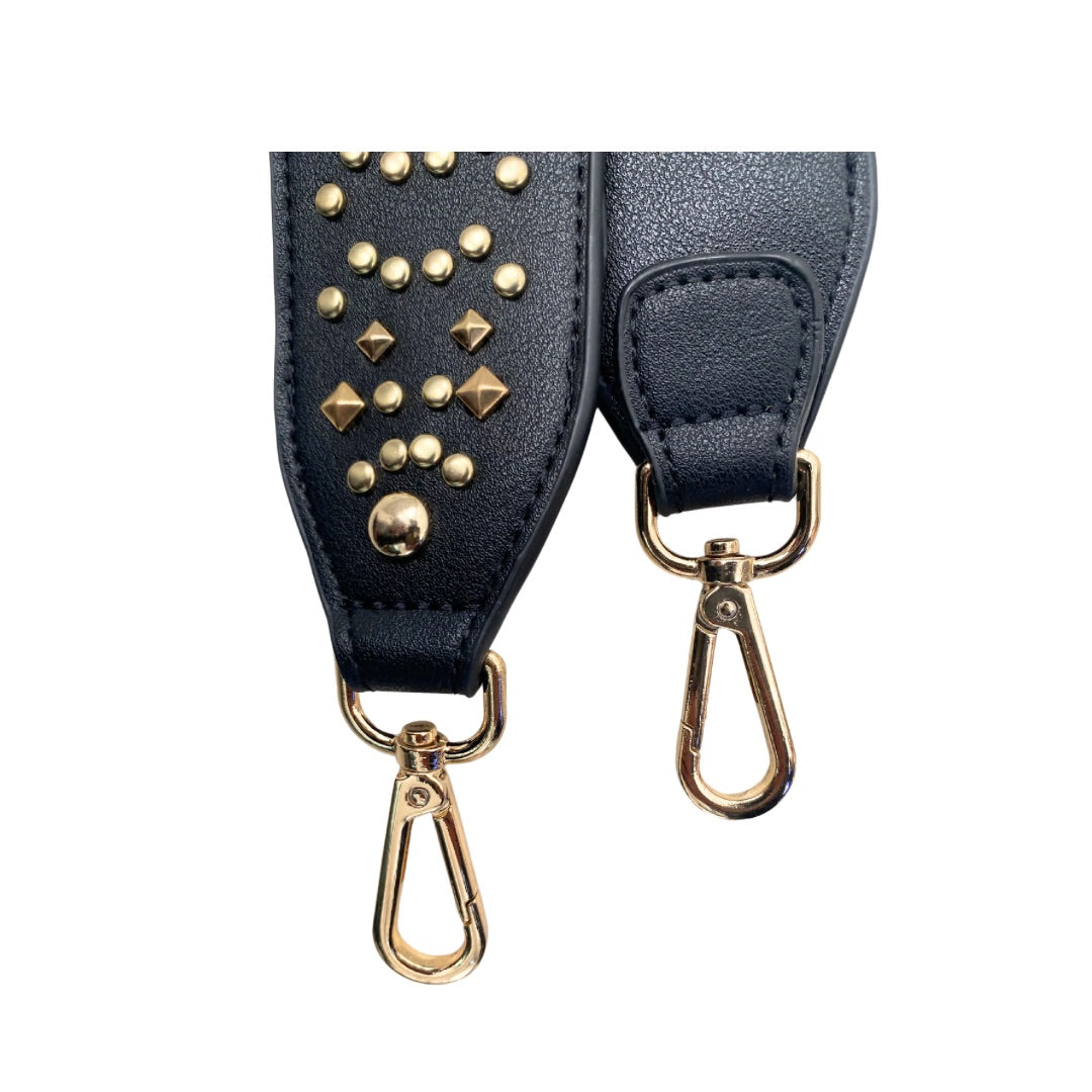 Switch up your favourite bag with this wide black strap scattered with gold-tone studs. The hardware clips on in seconds and the width sits comfortably on the shoulder for daily wear. Instant mood-lift for crossbodies, totes, or camera bags—easy, versatile, and just enough attitude for everyday rotation.