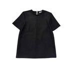 A clean, minimal short-sleeve top in soft faux-suede with an exposed back zip. Cut to a gently boxy silhouette that skims rather than clings, it pairs well with leather, denim, or tailoring for easy, high-impact styling.