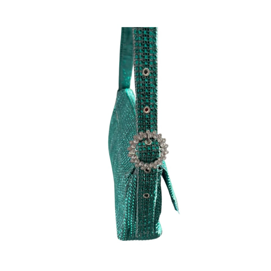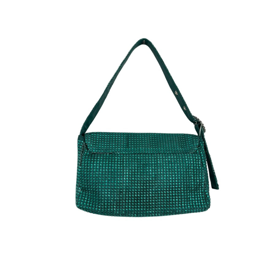 Diamanté Mesh Shoulder Bag Teal Green - New