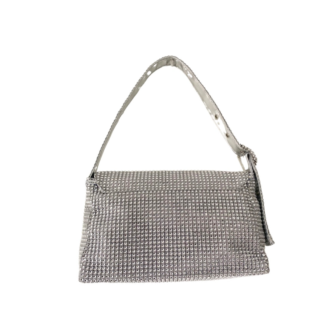 Add some bling to your style with this Diamanté Shoulder Bag in silver. The all-over mesh effect and designer inspired shape make it a wardrobe staple. The cute buckle strap detail and front flap add even more glam. You wont be able to help… Get Carrie-d away!