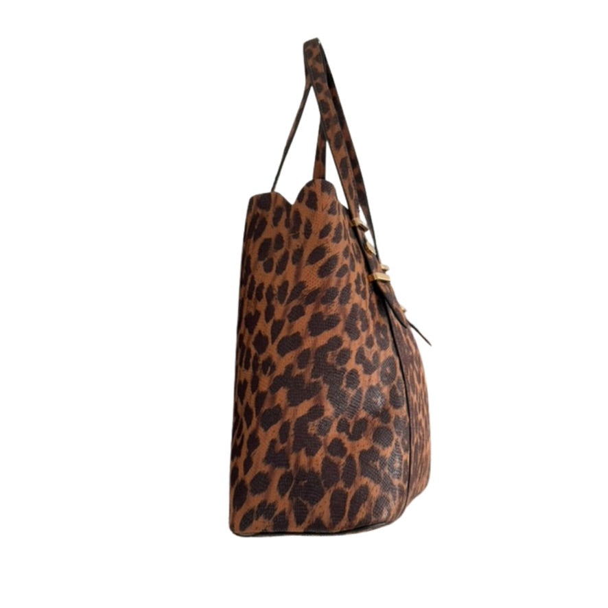 Leopard Faux Leather Structured Medium Tote Bag Brown – New
