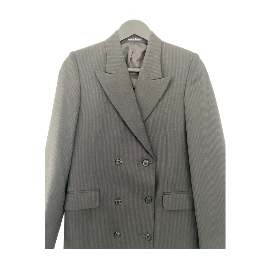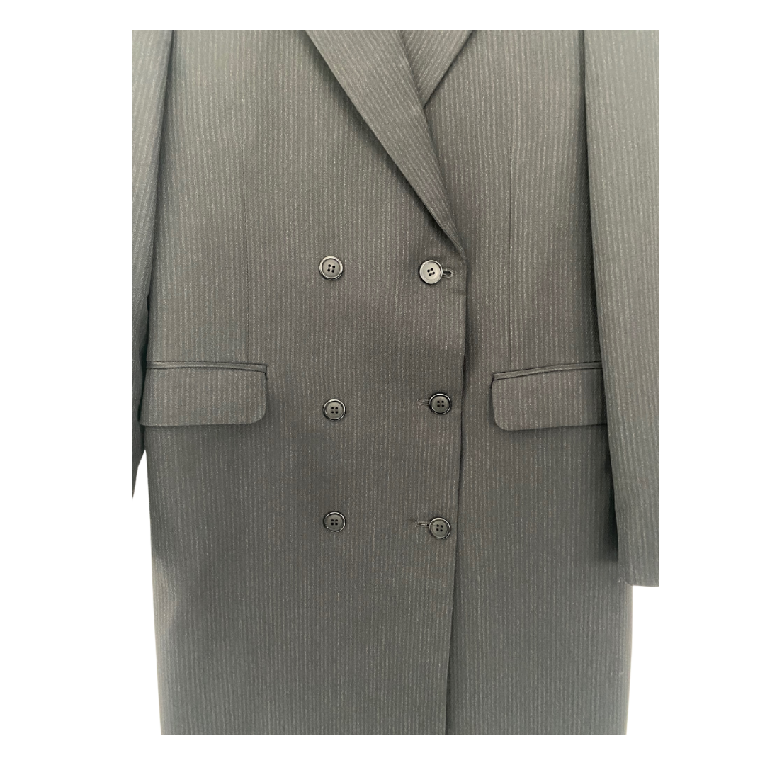 Pinstripe Double-Breasted Suit Long Blazer (14) Trousers (10) Black - Vintage