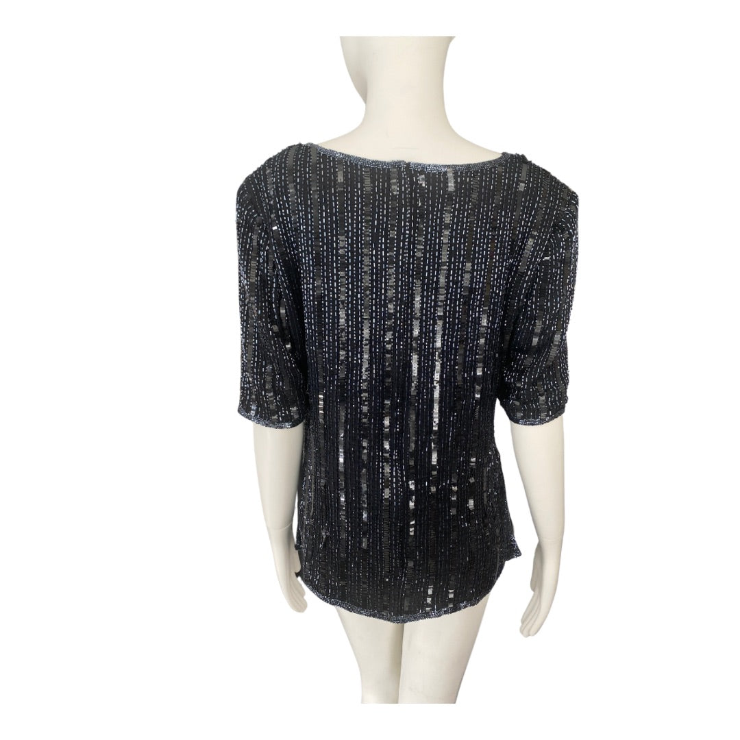 Sequins Sleeve Top Navy SIZE 14 - Vintage