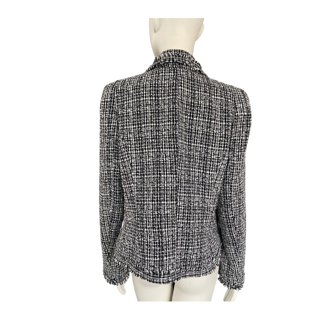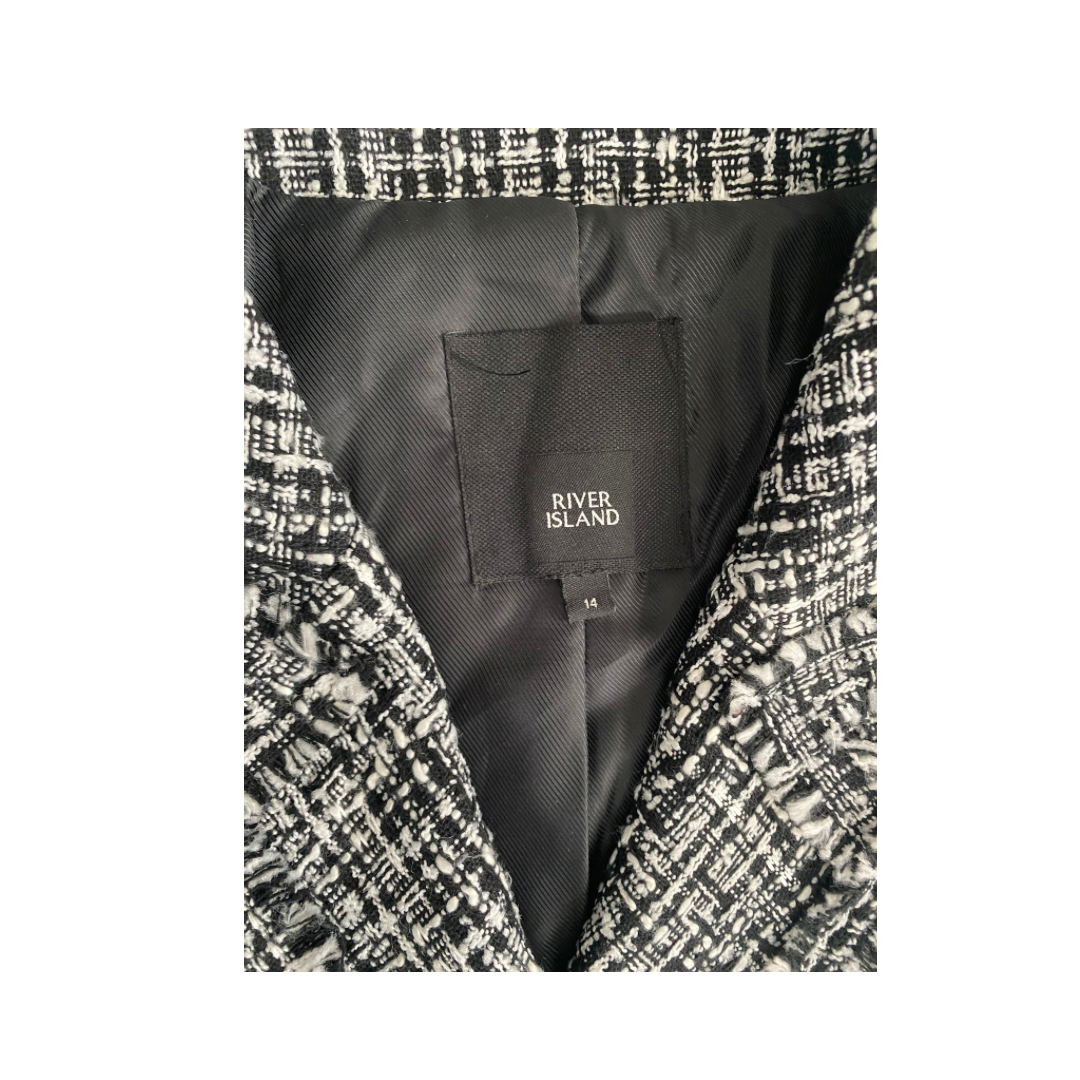 River Island Boucle Short Blazer Double Breasted Black White SIZE 14