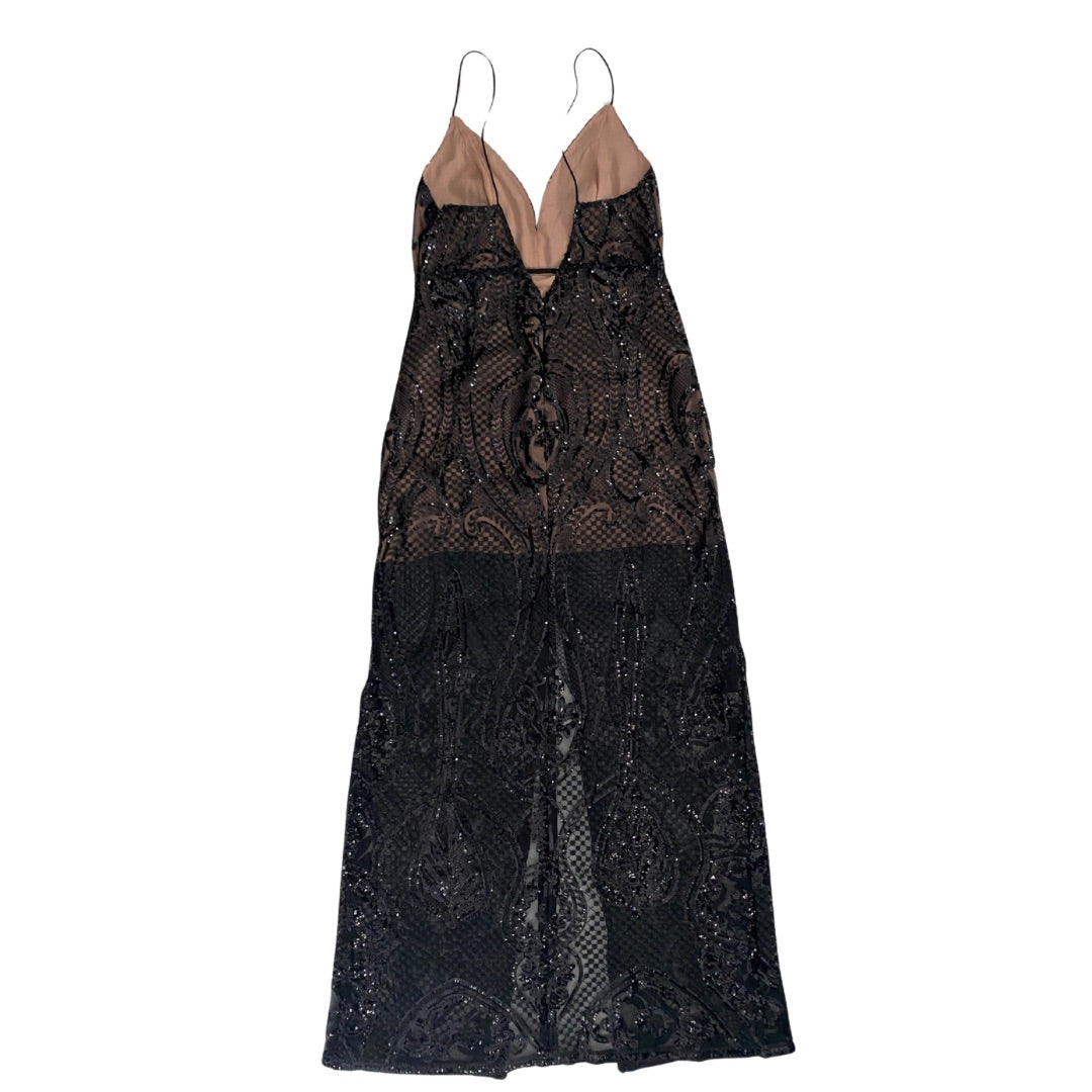 Old Topshop Sequins Maxi Dress Black Nude SIZE 12 - New
