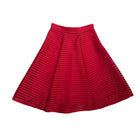 Add a pop of color to your wardrobe with this striking red A-line skirt. Designed with a flattering fit and flare silhouette, it features a unique striped mesh overlay that gives it a playful, modern edge. Perfect for both day and night, this skirt pairs effortlessly with a simple top for a chic, polished look. Whether you’re heading to the office or out for the evening, this versatile piece will keep you looking on trend and confident.
