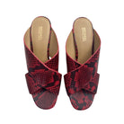 Elevate your style with the MICHAEL KORS Porter Mule Sandal. Step out in confidence with its bold red color and eye-catching snakeskin pattern. The gold block heel adds a touch of glamour while the open toe and cross front detail keep you comfortable all day.