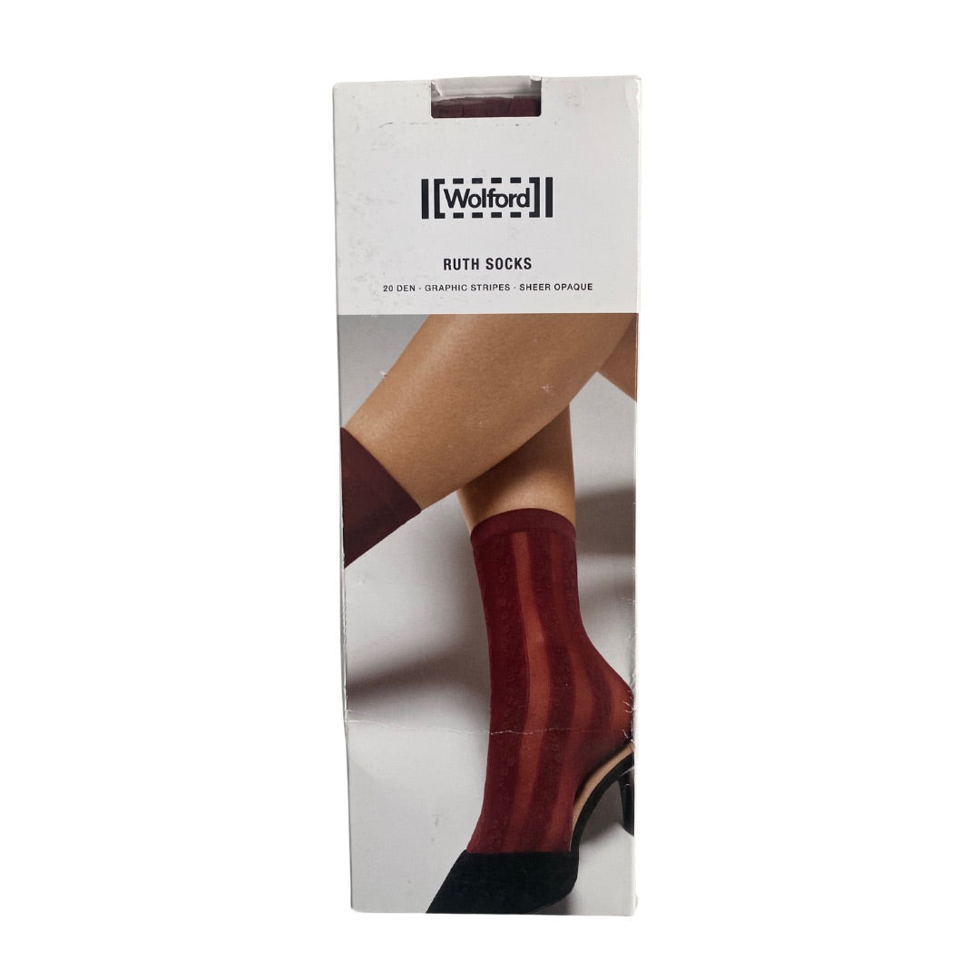 Wolford Ruth Sheer Floral Stripe Ankle Socks 20 Denier Açai Red - New