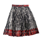 Infuse your wardrobe with a daring touch of wild sophistication with this zebra-print skirt. The bold black and white pattern, accented with vibrant red borders, exudes confidence and flair. The flowing design and subtle pleats create a flattering silhouette, while the gold buckle adds a touch of finesse. Perfect for making a statement, this skirt pairs beautifully with a simple top and heels for a striking ensemble that transitions effortlessly from day to night.