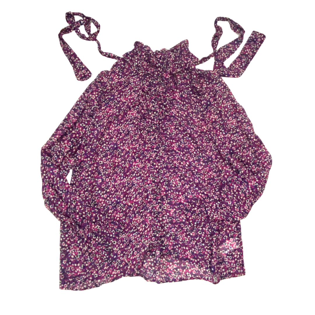 MICHAEL KORS Sheer Floral Ruffle Blouse Purple Size L – New