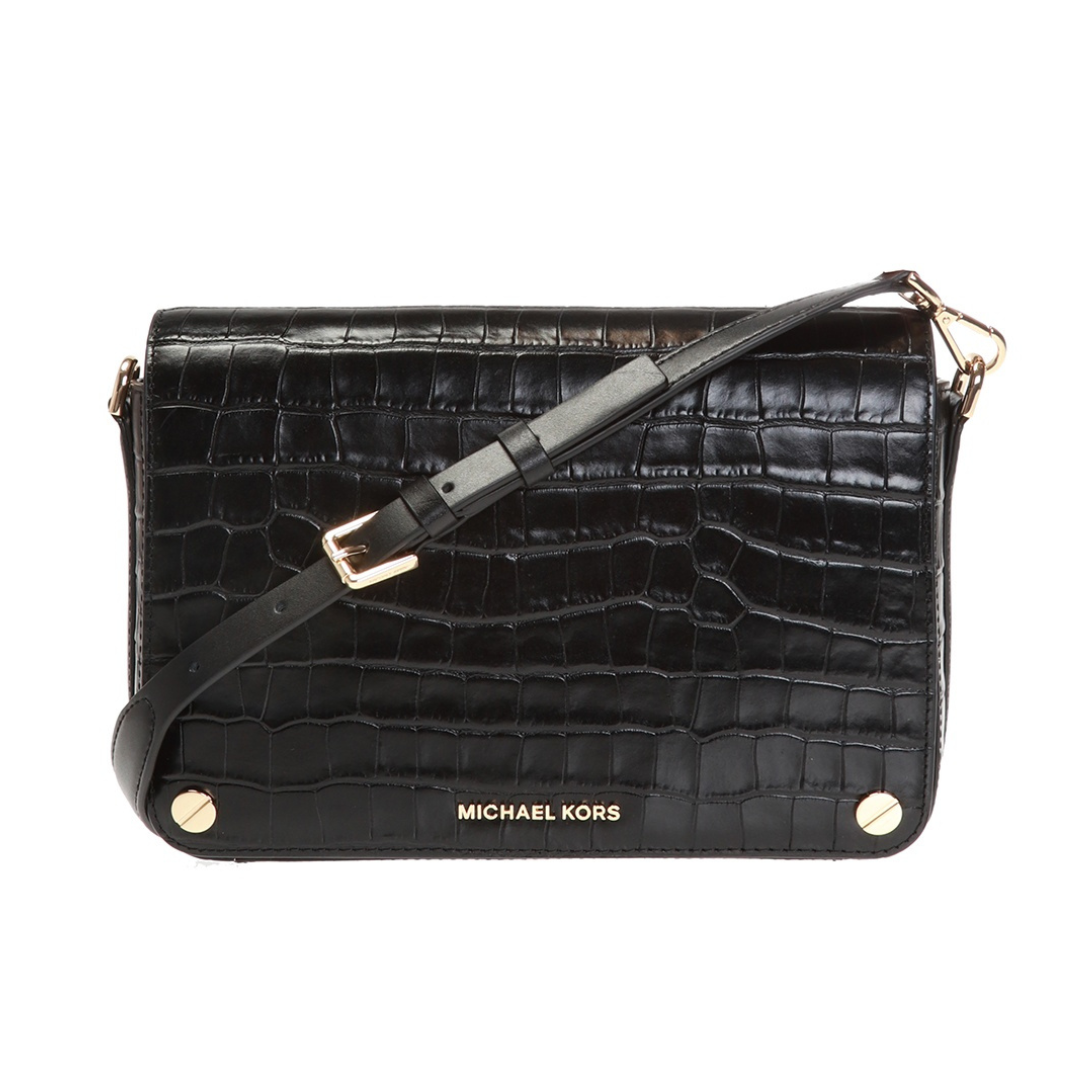 MICHAEL KORS Jetset Crossbody Leather Croc Effect Black - Preloved
