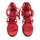 Elevate your summer wardrobe with MICHAEL KORS Vero Lug Platform Sandals in a vibrant coral hue. These ankle-wrap sandals feature crisscross leather straps and a tie strap fastening for a secure fit. The chunky lugged platform heel adds both style and height, while the stacked heel provides all-day comfort.
