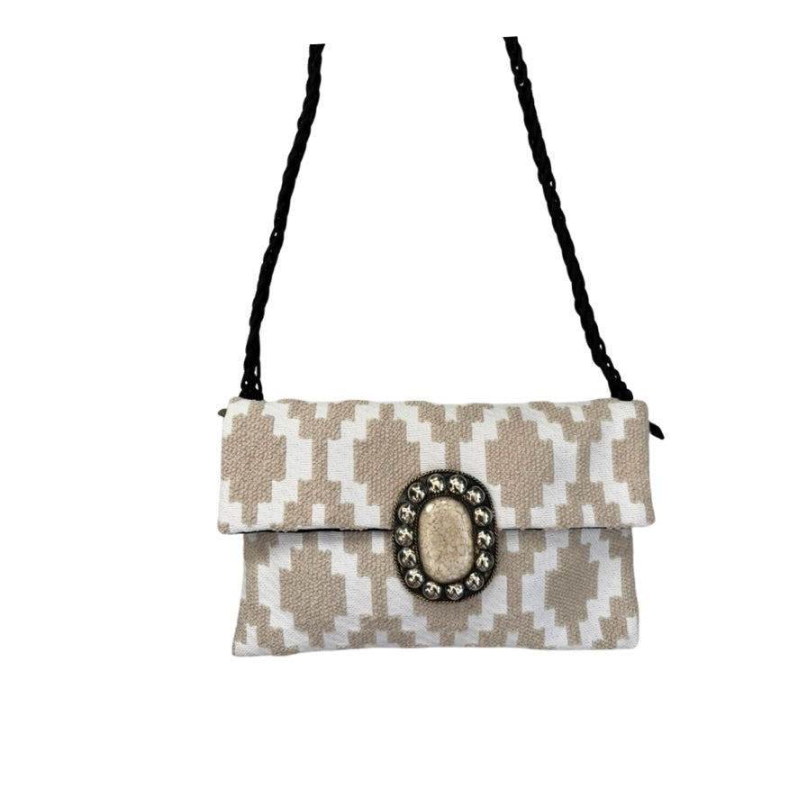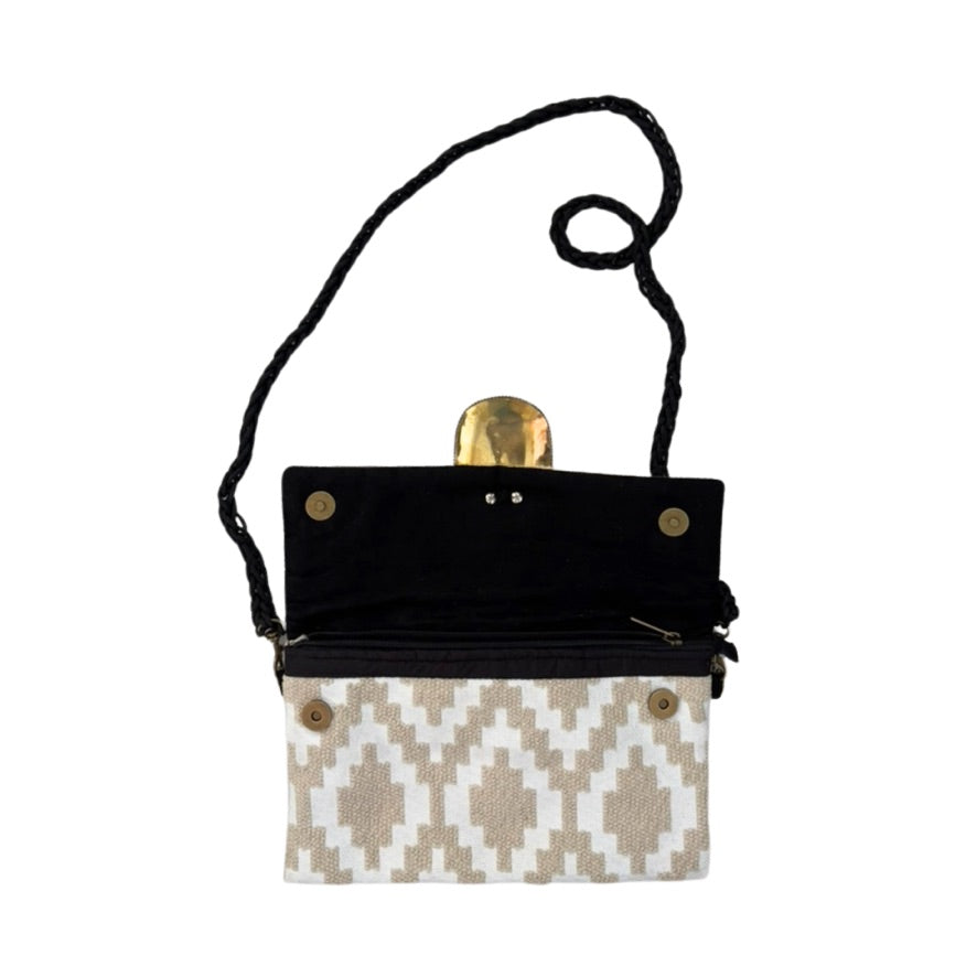 Handmade Embellished Ikat Crossbody Bag Beige – New