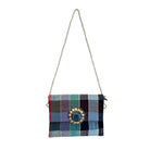Woven Plaid Check Clutch with Gem Embellishment Blue - New