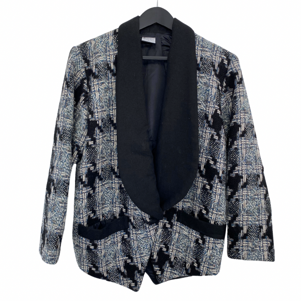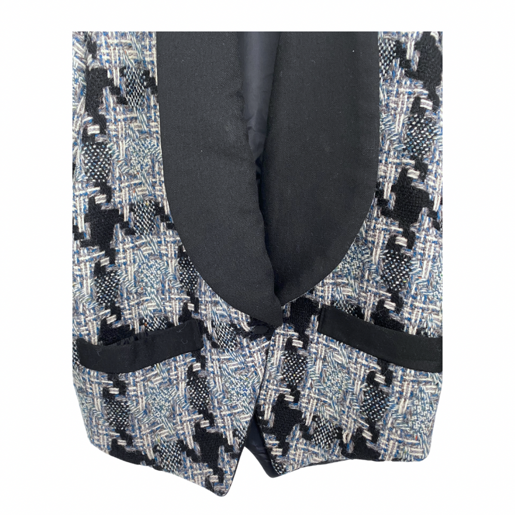 Irish Tweed Herringbone Check Tuxedo Jacket Grey Blue SIZE 10 - Vintage