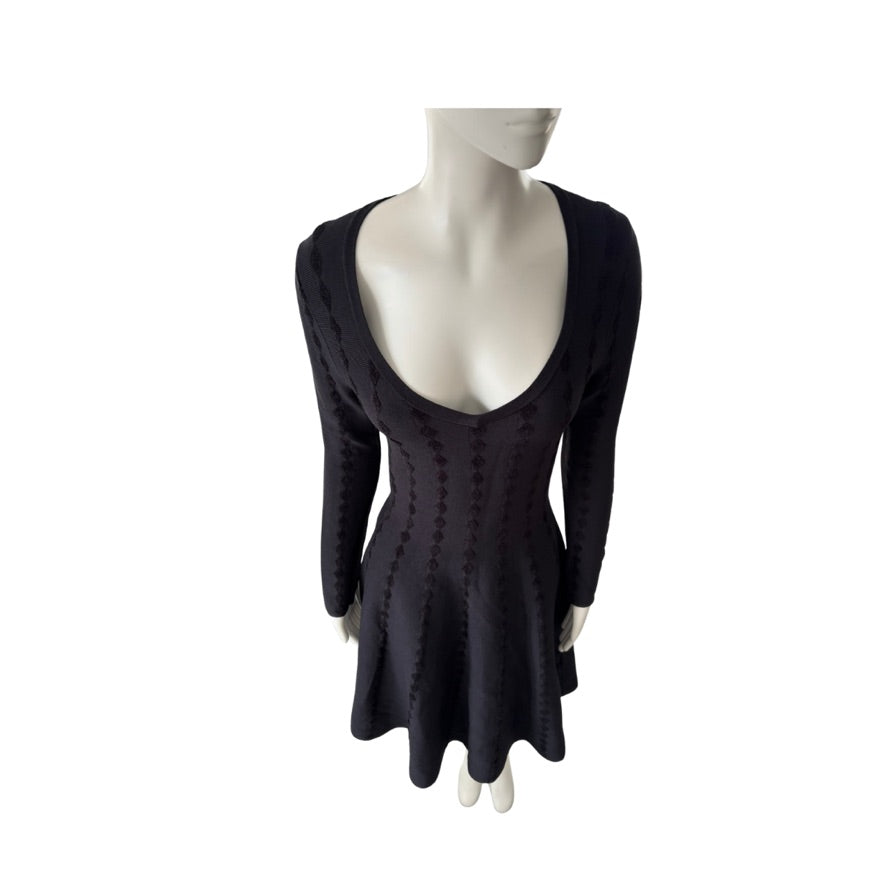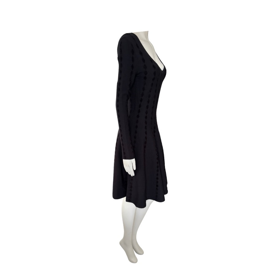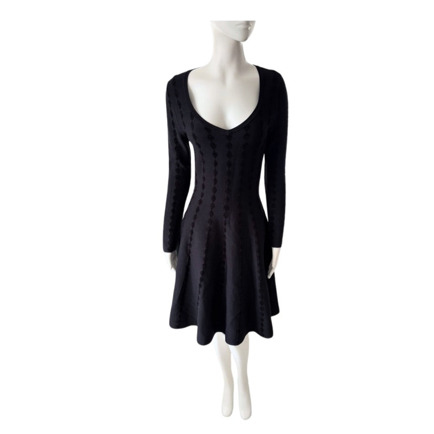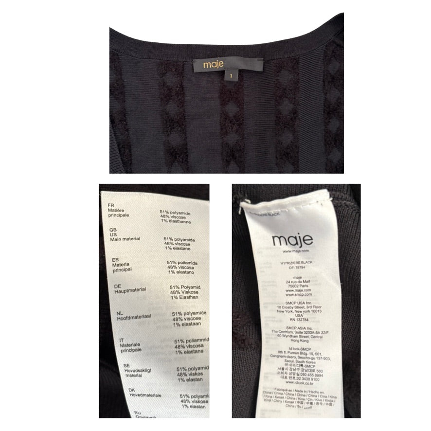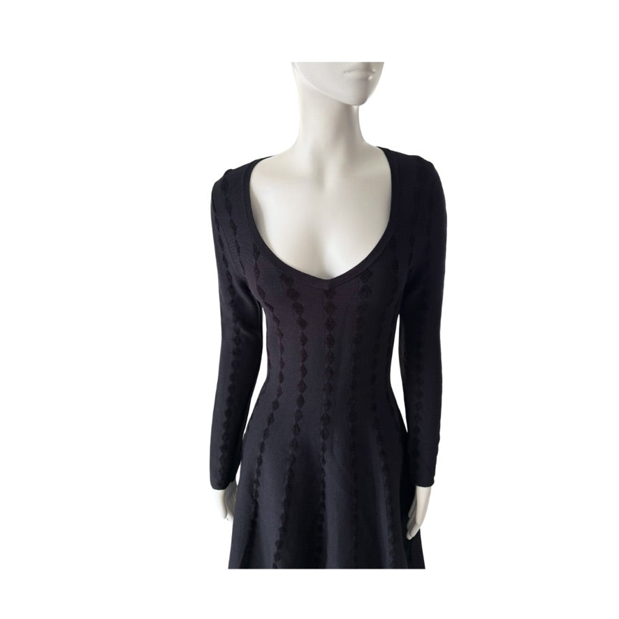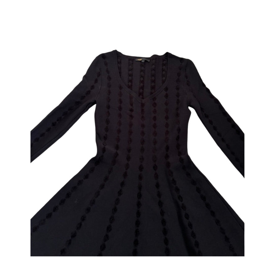 Maje Riziere Jacquard Knit Fit & Flare Dress Black Size 8 - Preloved