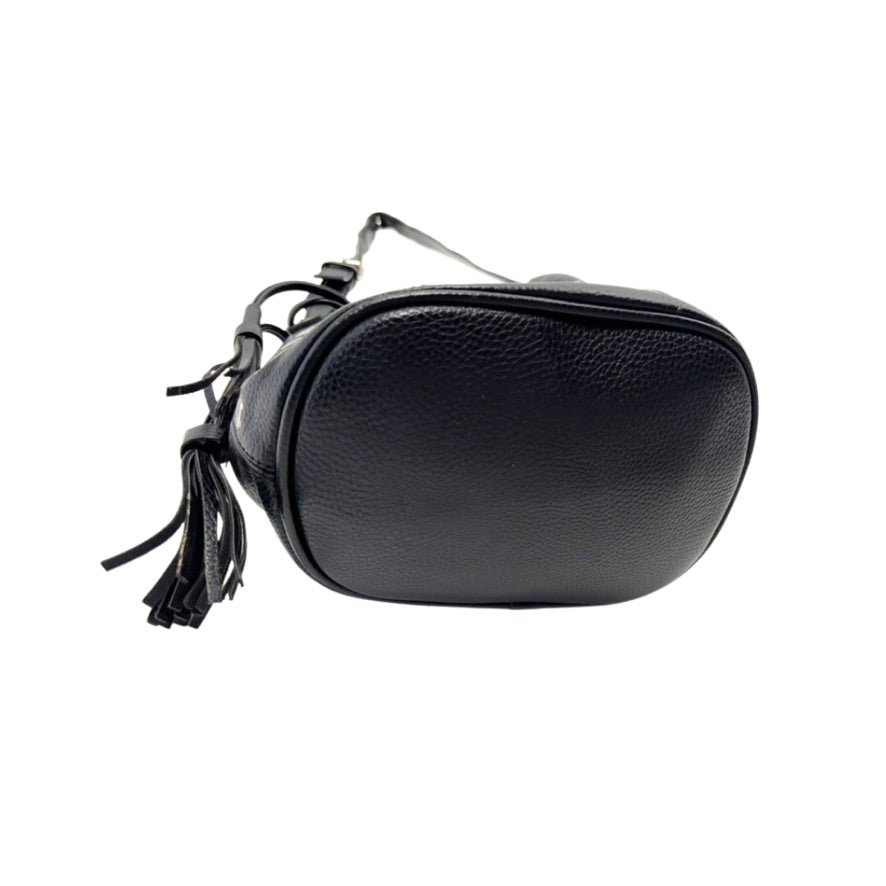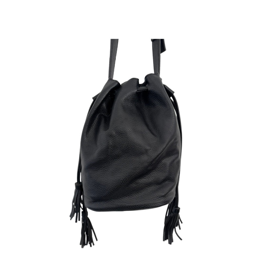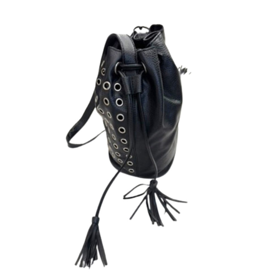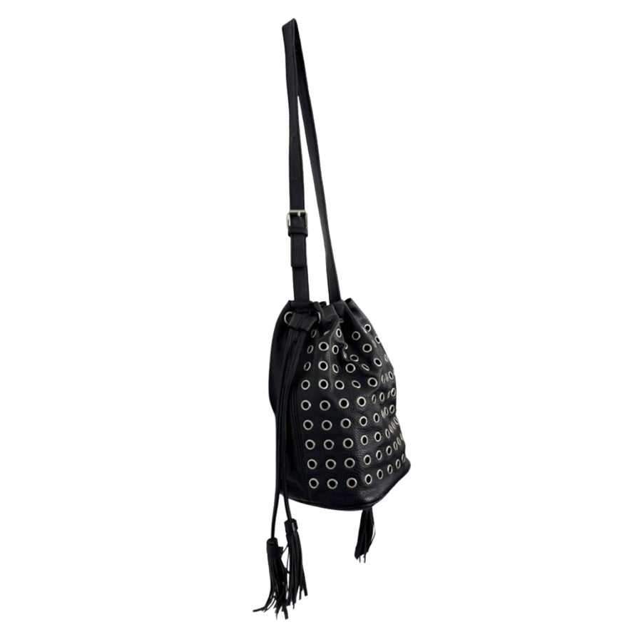 Grommet Faux Leather Tassel Bucket Crossbody Bag Black – Preloved