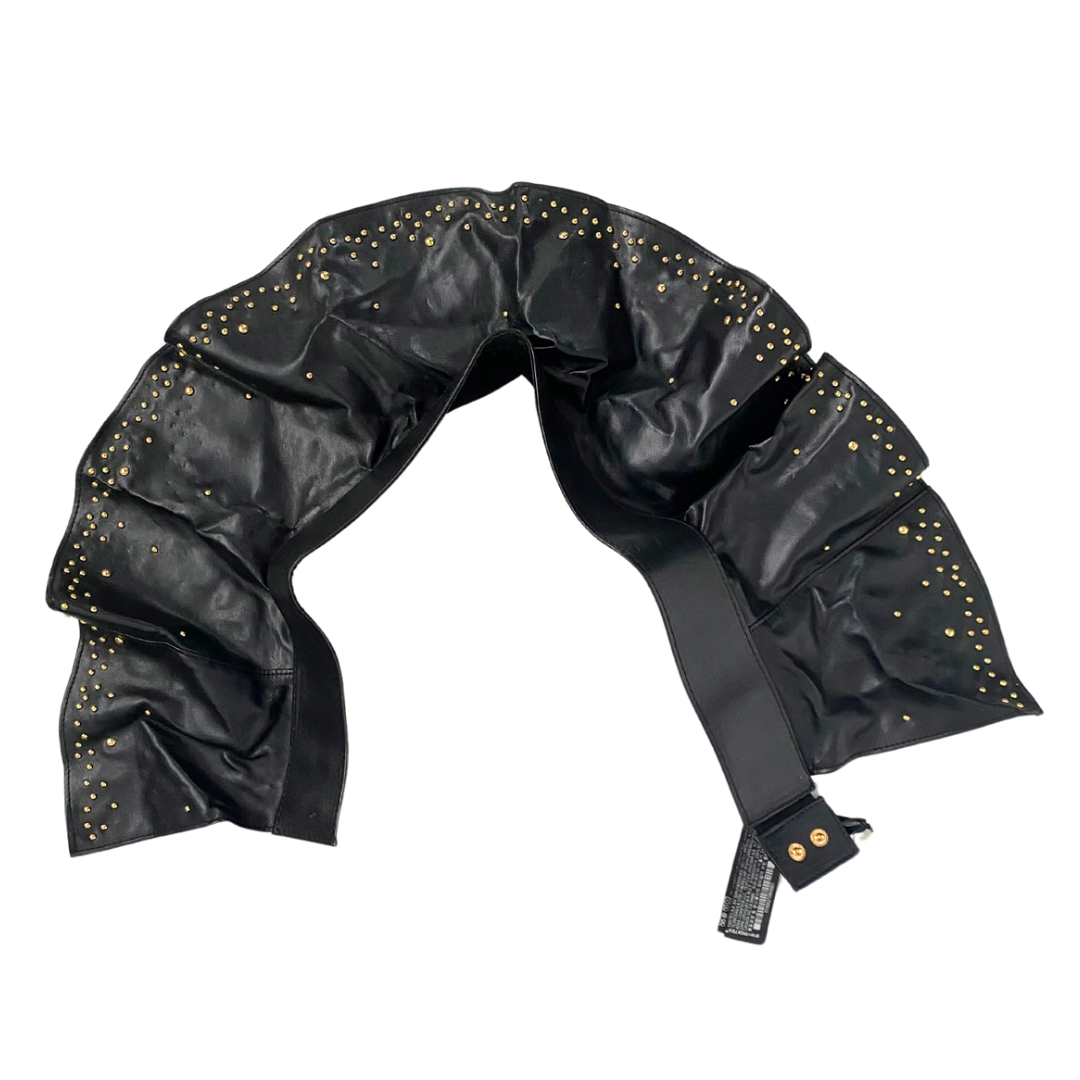 Gold Stud Peplum Belt Faux Leather Black SIZE M - New
