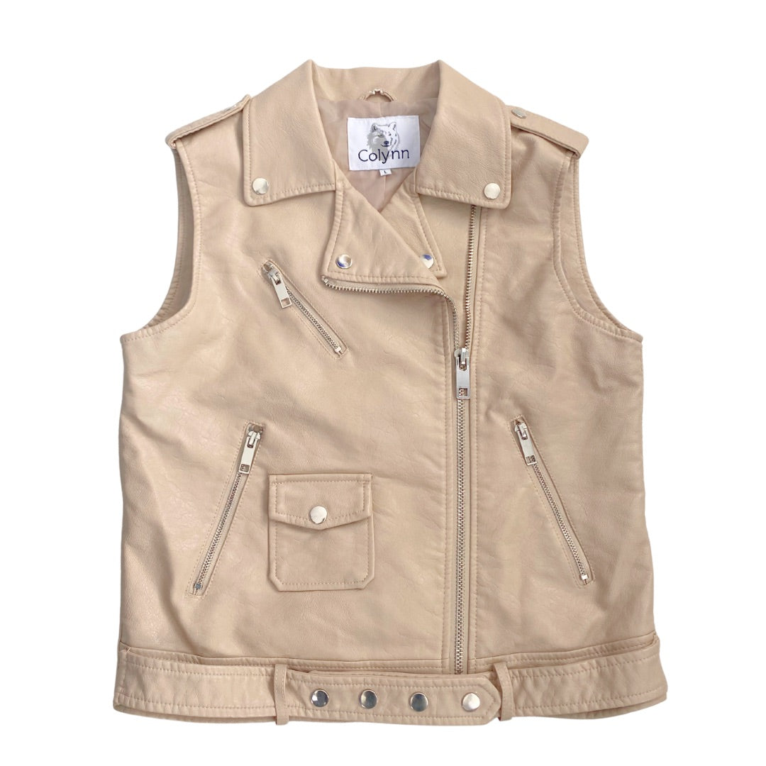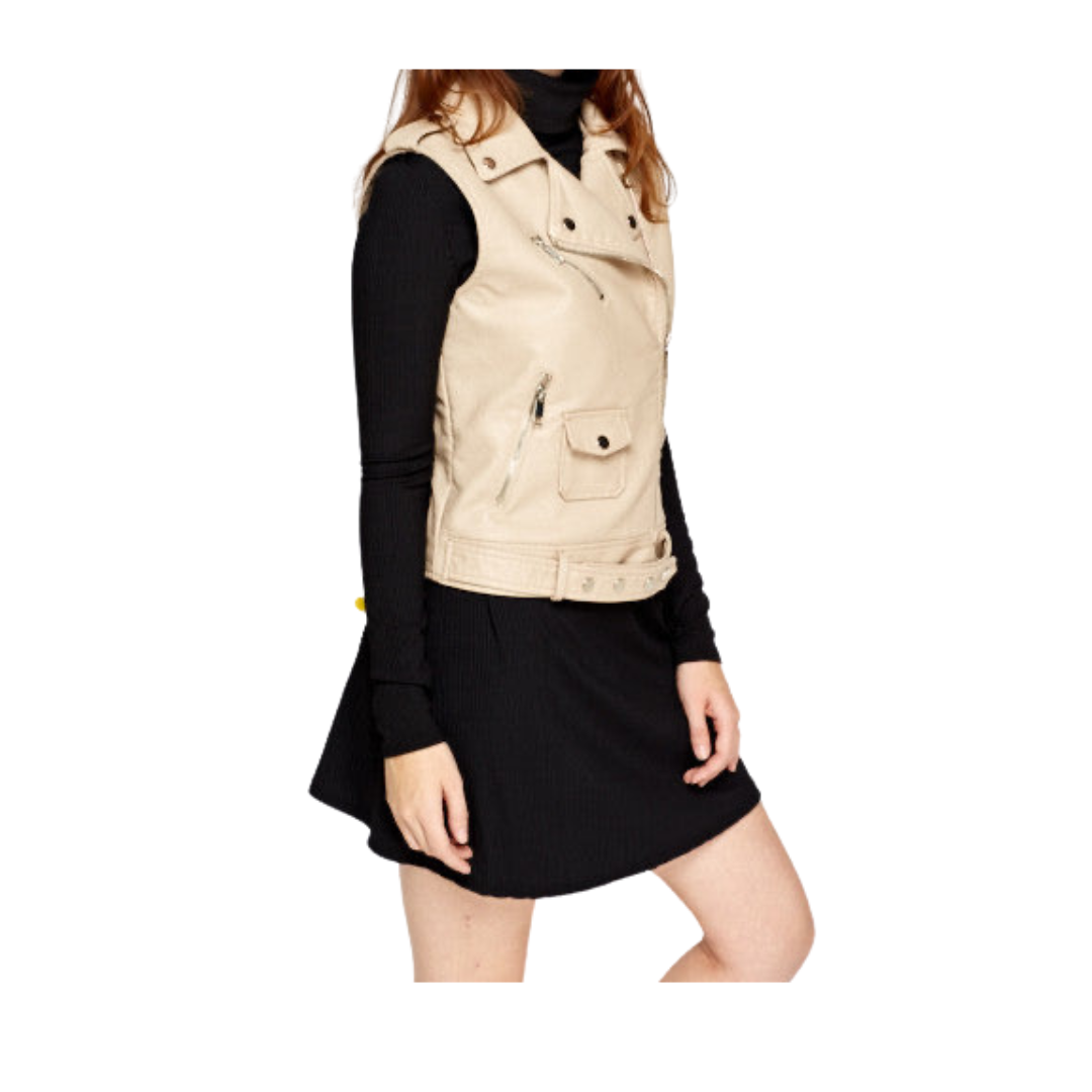 Faux Leather Biker Waiscoat Cream SIZE L - New