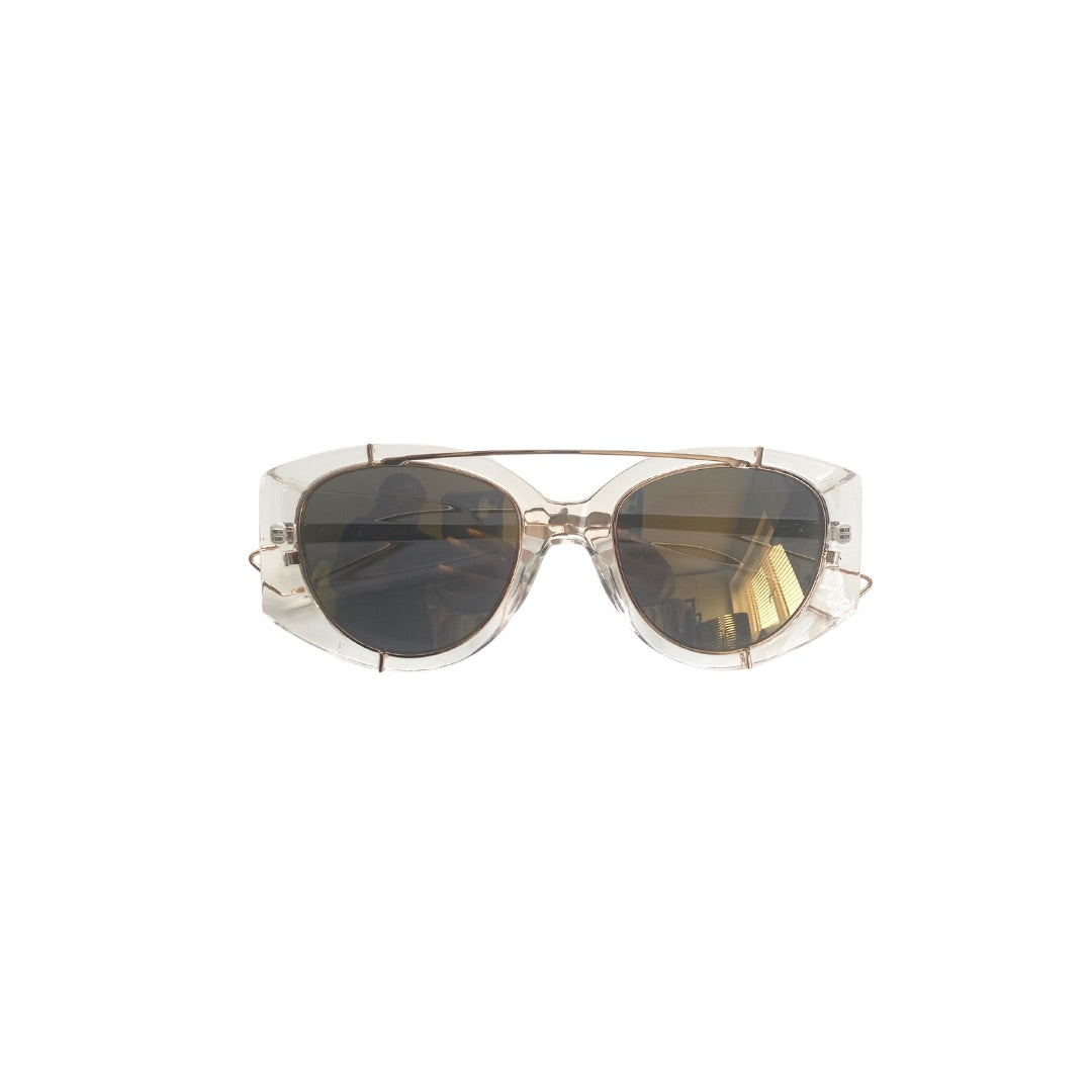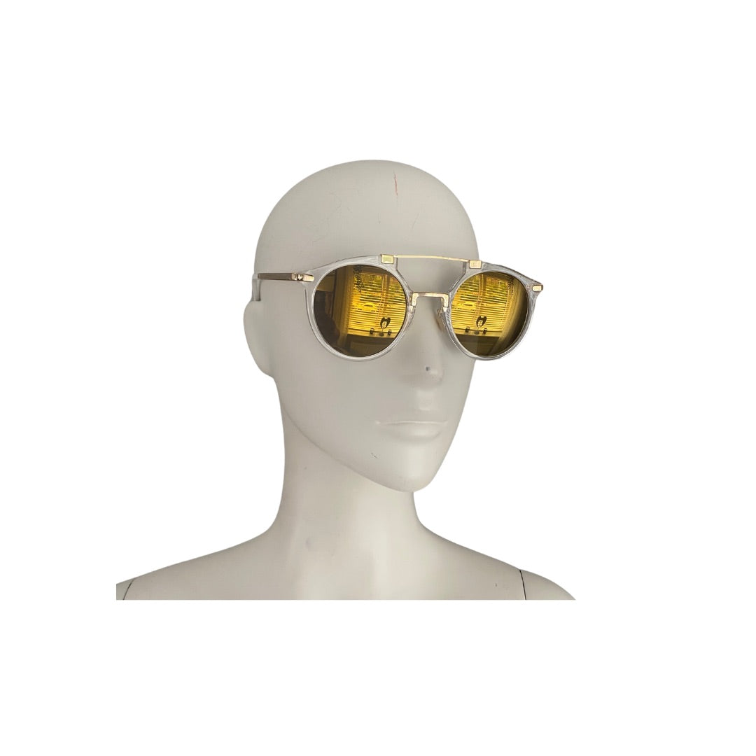 Crystal clear and unapologetically bold, these sunglasses are designed for those who refuse to blend in. With their transparent frame and gold accents, they radiate an aura of confident individuality. The lenses, offering a dark yellow tinted contrast-these shades aren’t just accessories; they’re a statement. Whether paired with a tailored suit or your favorite weekend ensemble, these sunglasses ensure you stand out, even when you’re incognito.