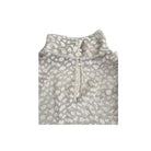 There’s a quiet poise to this blouse — cut from sheer jacquard with a subtle animal motif. The high neckline and soft blouson sleeves lend structure without severity, while the muted tone feels both grounded and intentional. Worn with fluid satin or tailored wool, it anchors a look that speaks in low, confident tones.