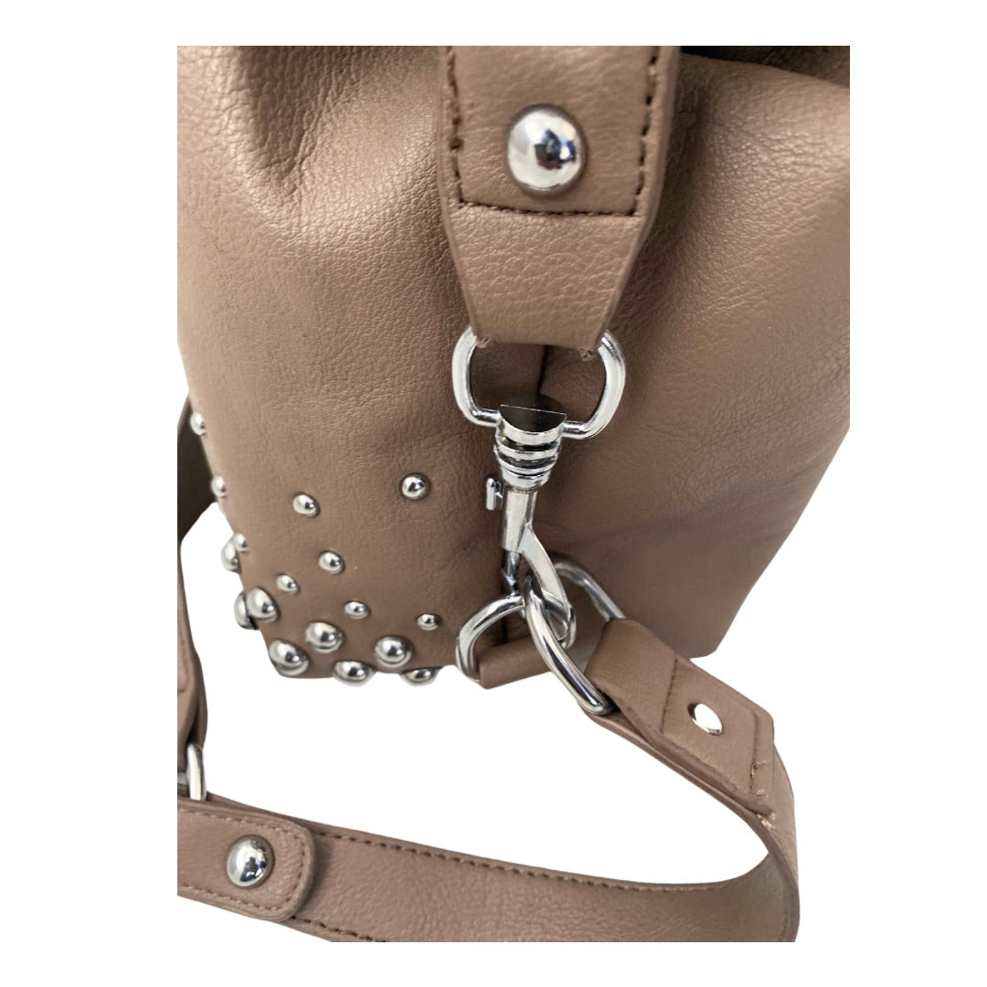Studded Faux Leather Hobo Shoulder Bag Brown - Preloved