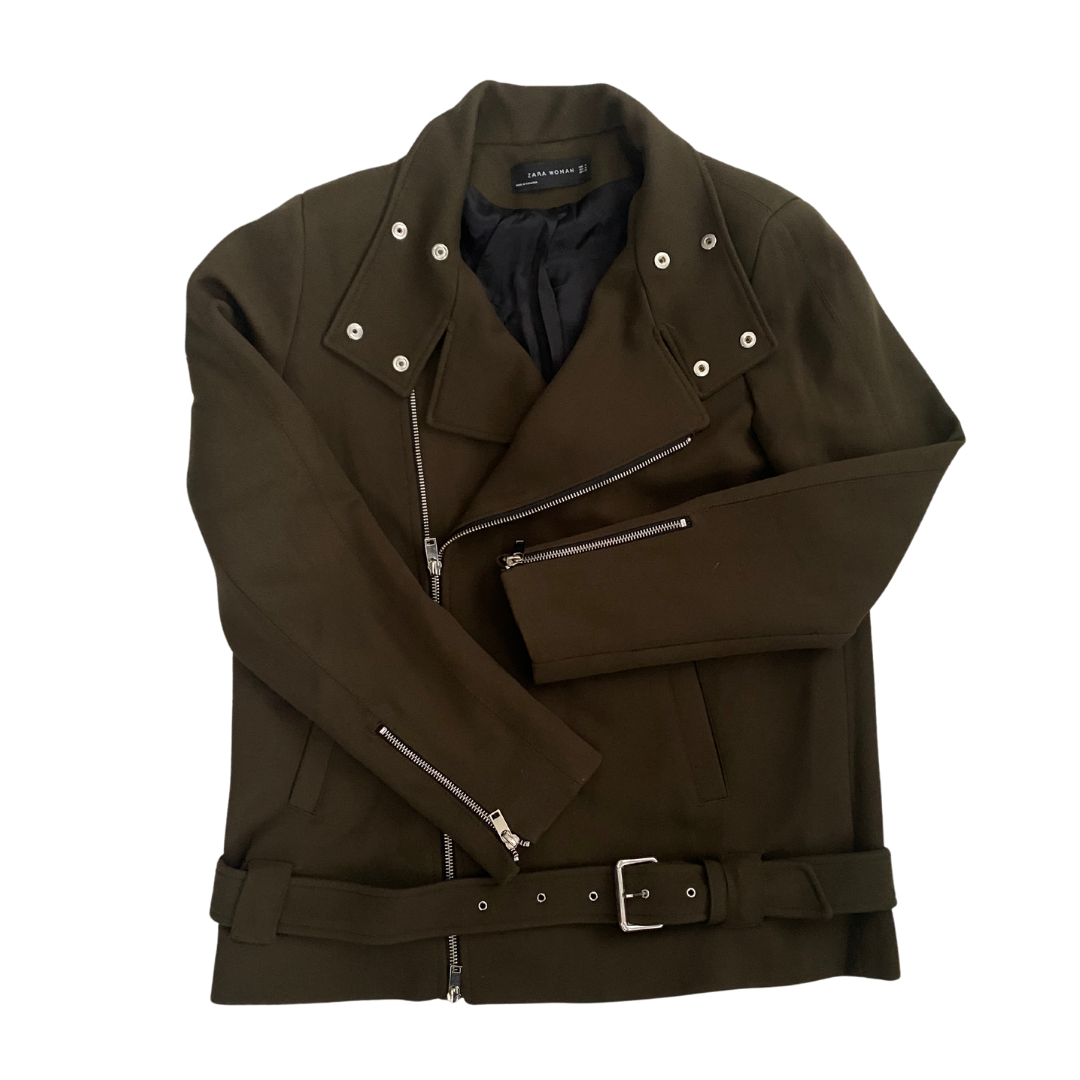 ZARA Longline Biker Jacket Khaki Green SIZE M - Preloved