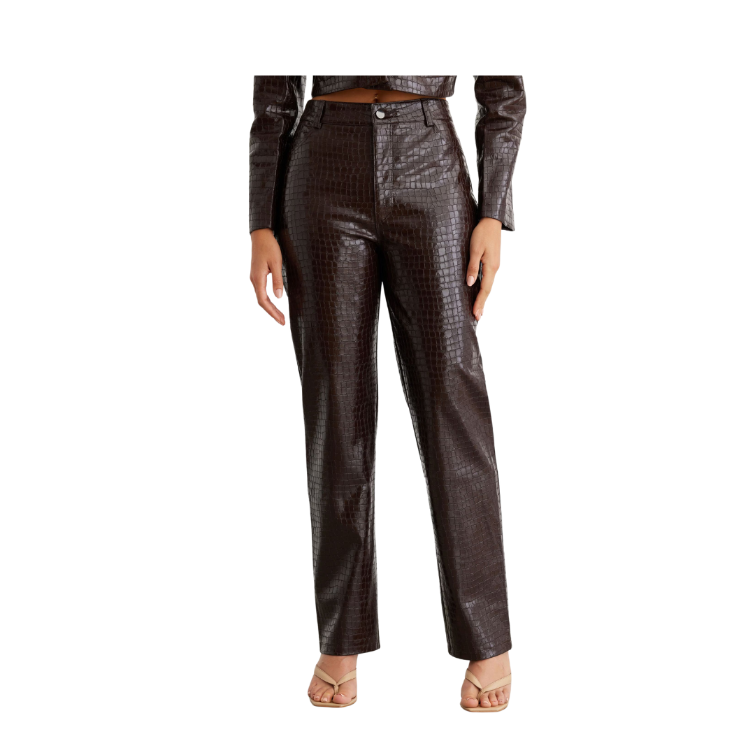 Croc-Embossed Faux Leather Trousers Chocolate Brown Size 12 – Preloved