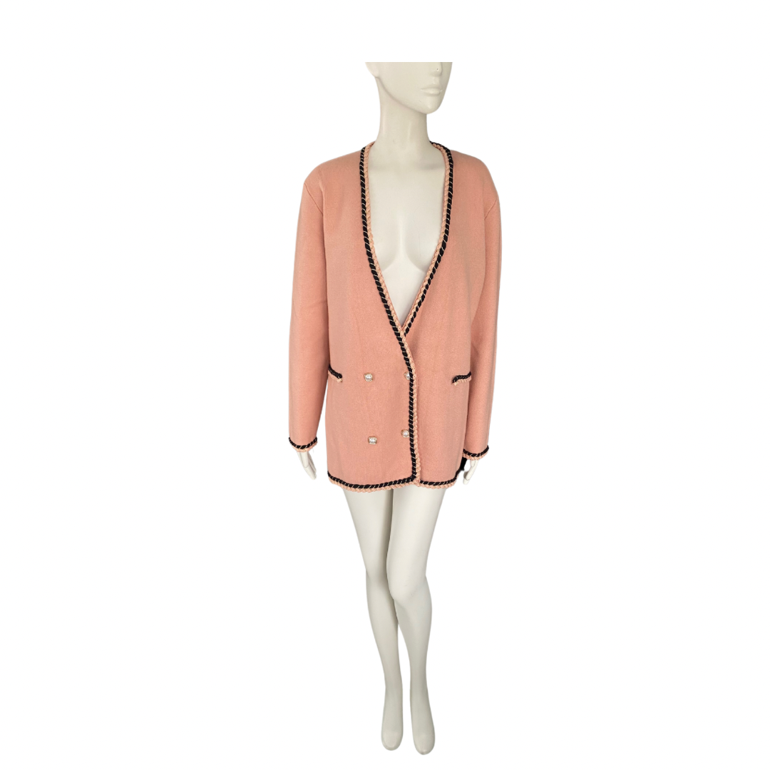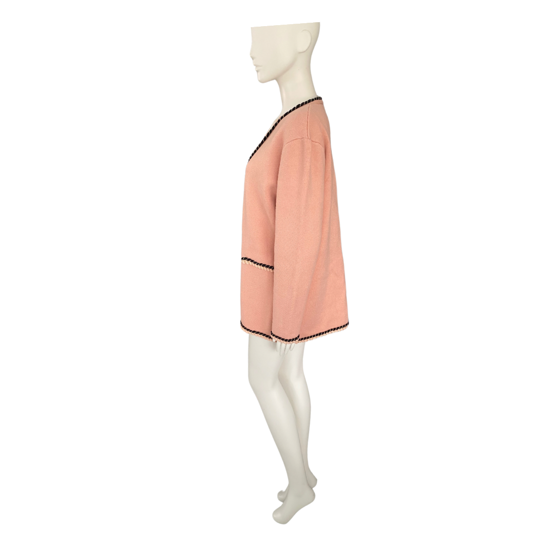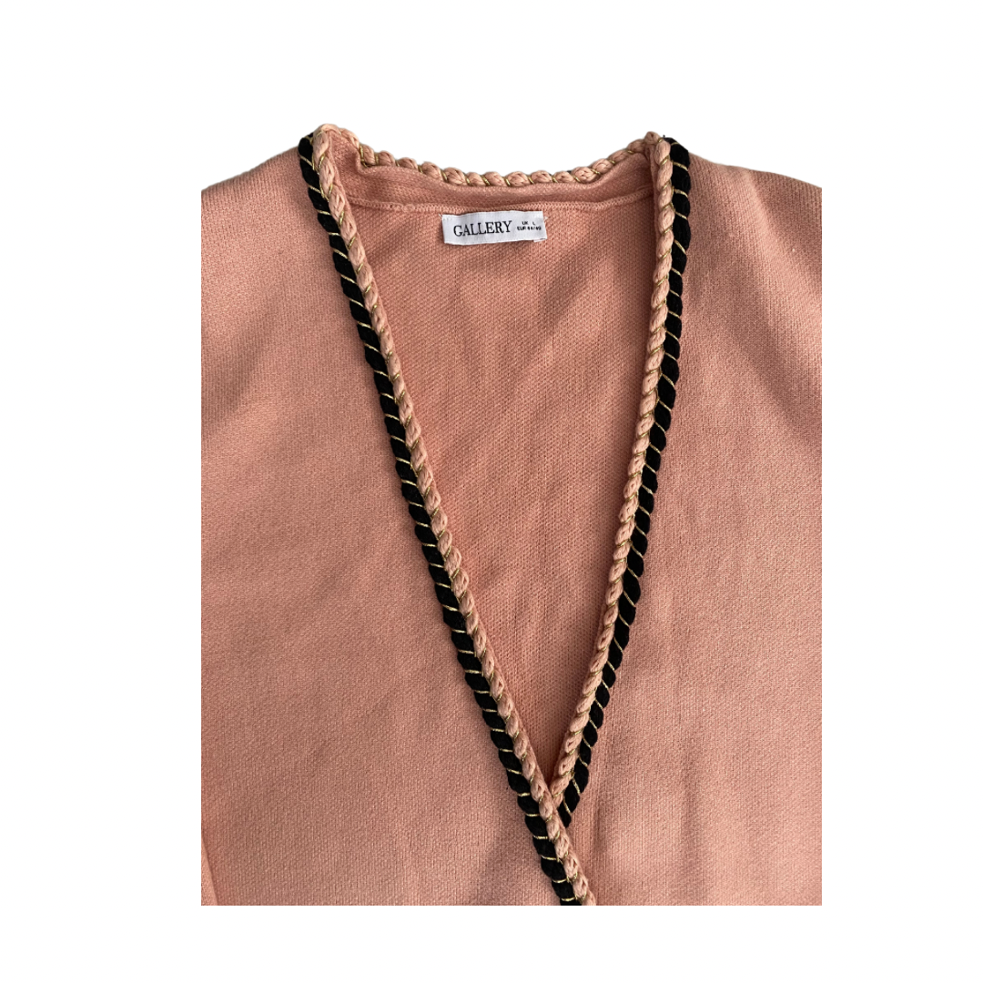 Gallery Double-Breasted Cardigan Braided Trim Peach SIZE L - Preloved