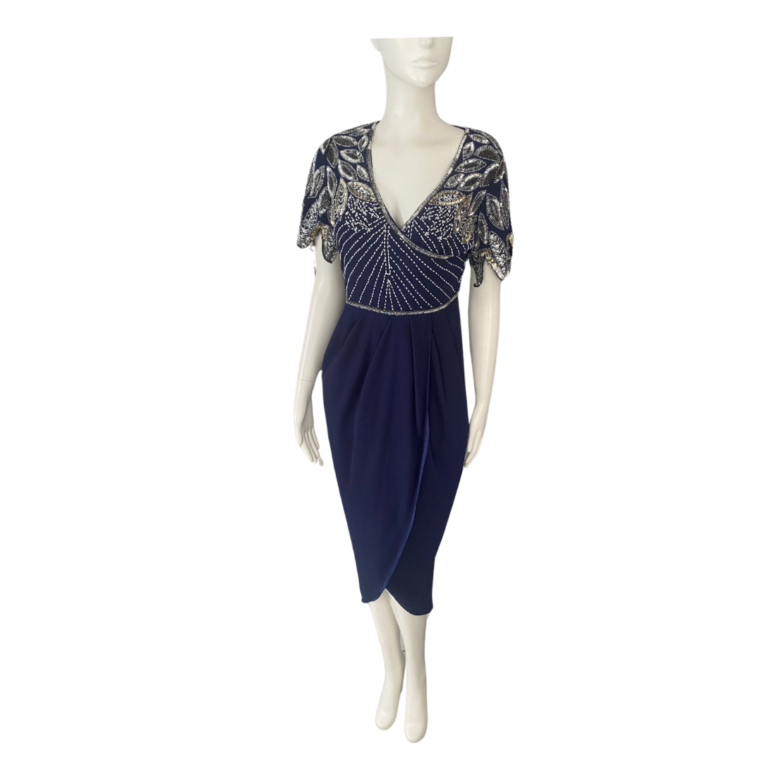 Virgos Lounge Sequins Midi Dress Navy SIZE 8 - Preloved