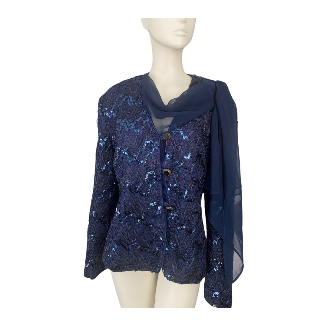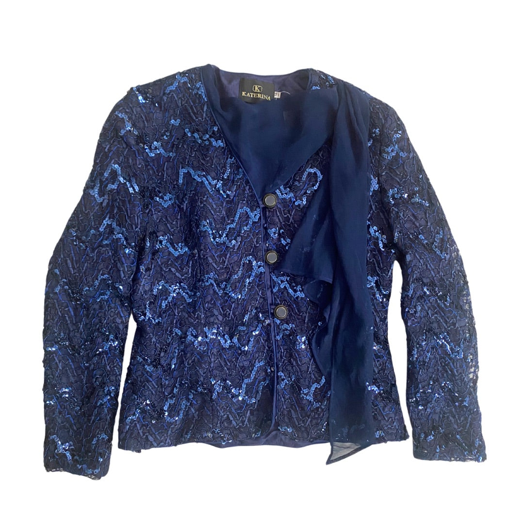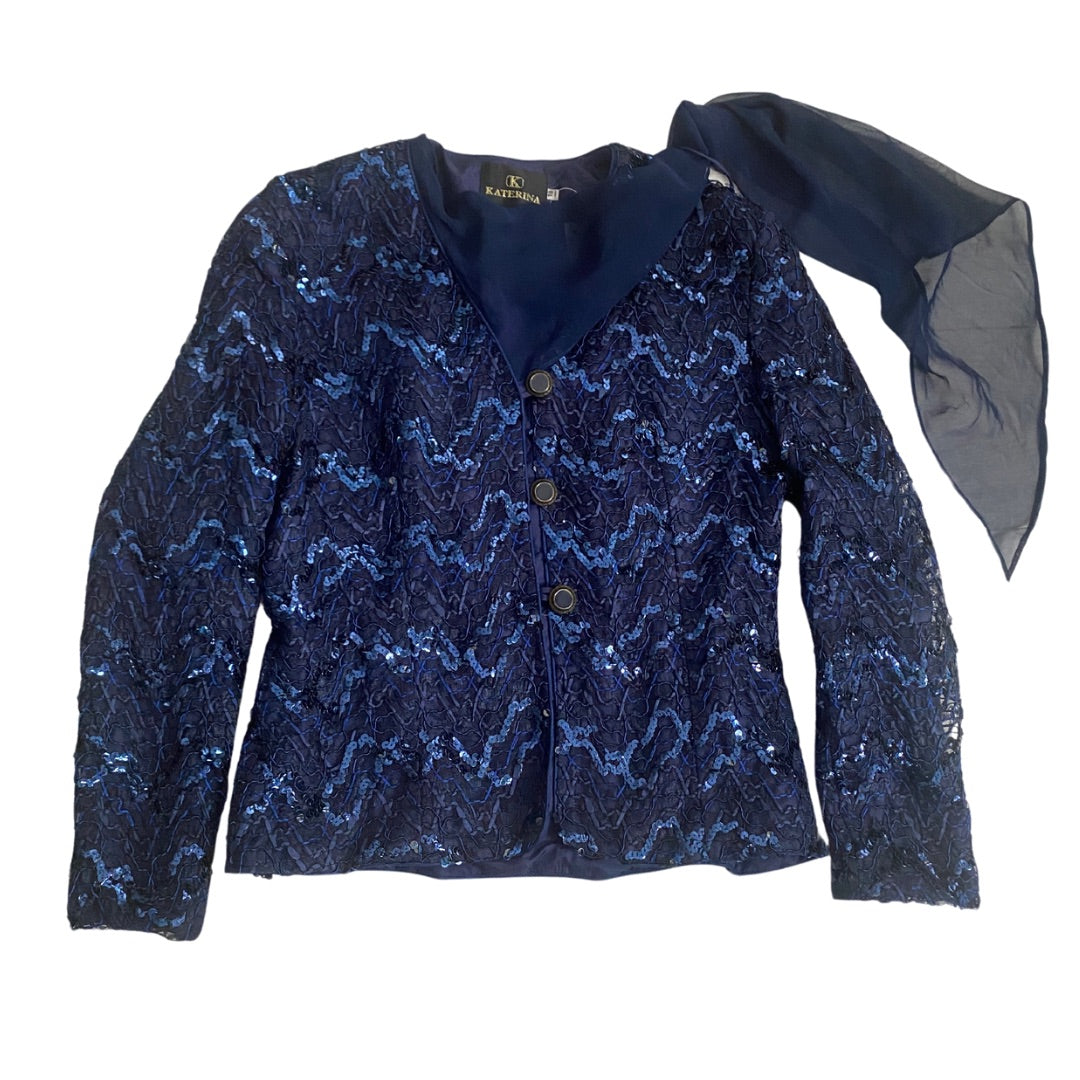 Sequins Sleeve Top Navy SIZE 14 - Vintage