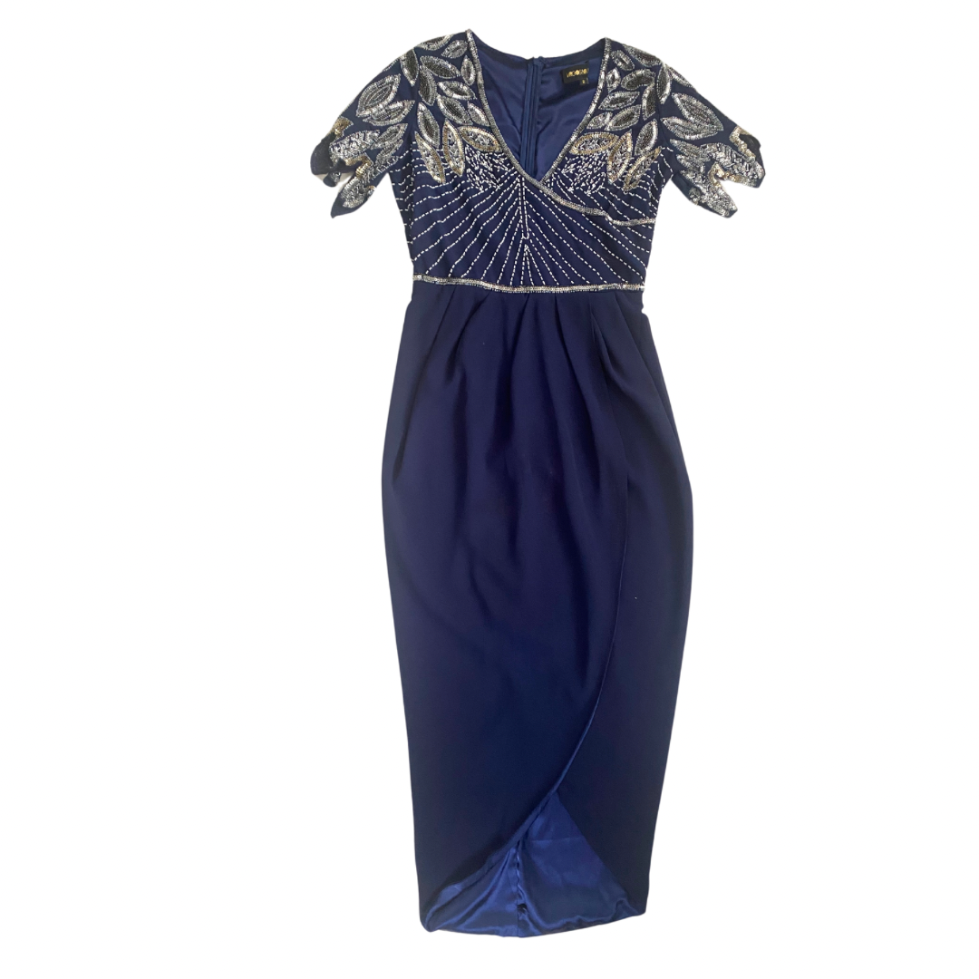 Virgos Lounge Sequins Midi Dress Navy SIZE 8 - Preloved