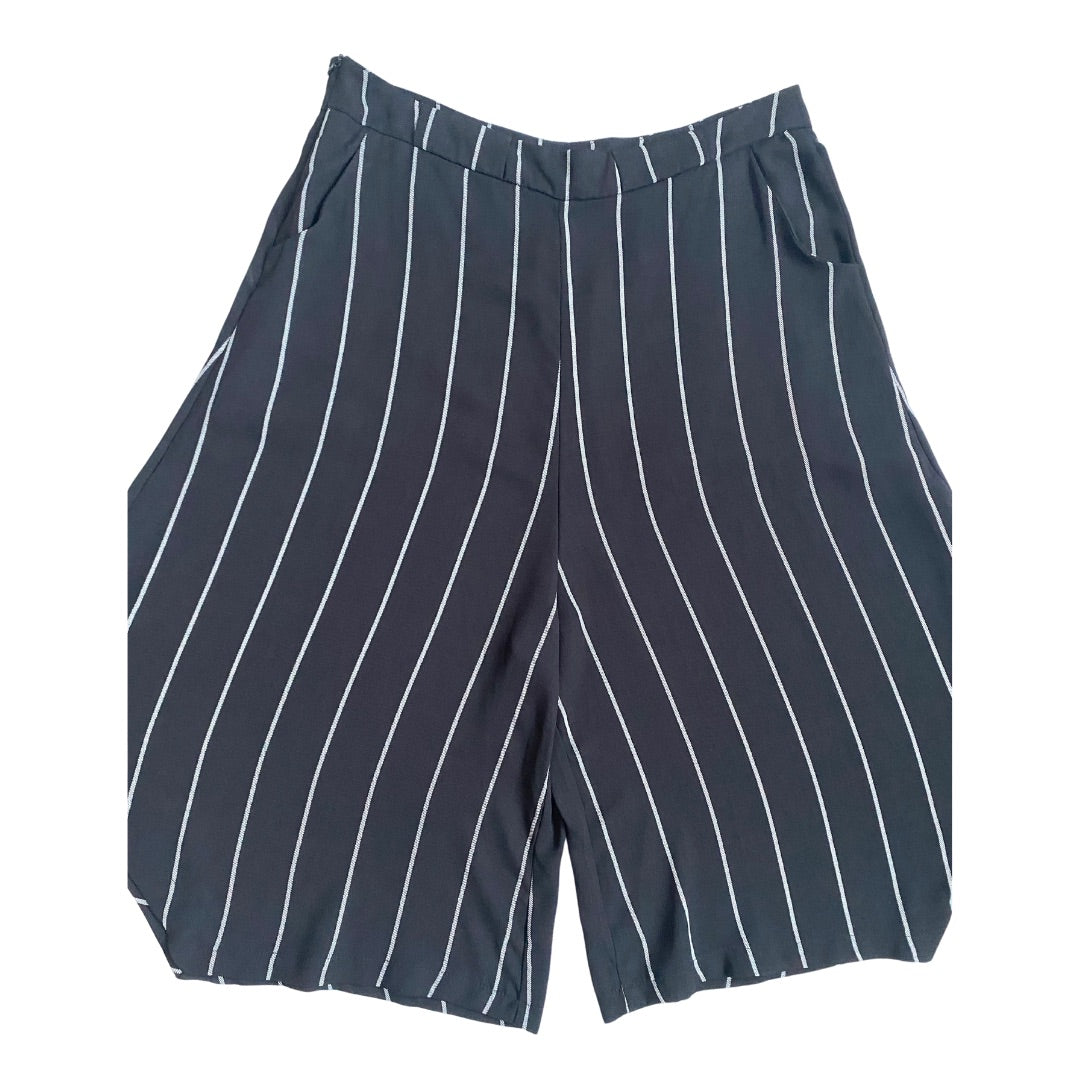 Pinstripe Asymmetric Long Shorts Culottes Black SIZE XL