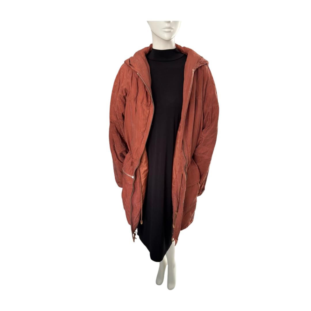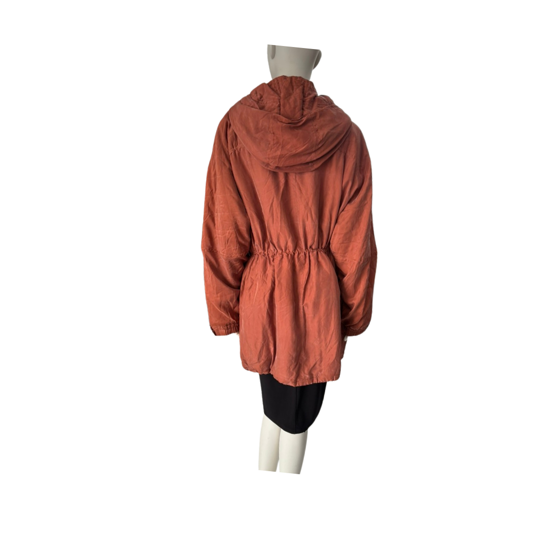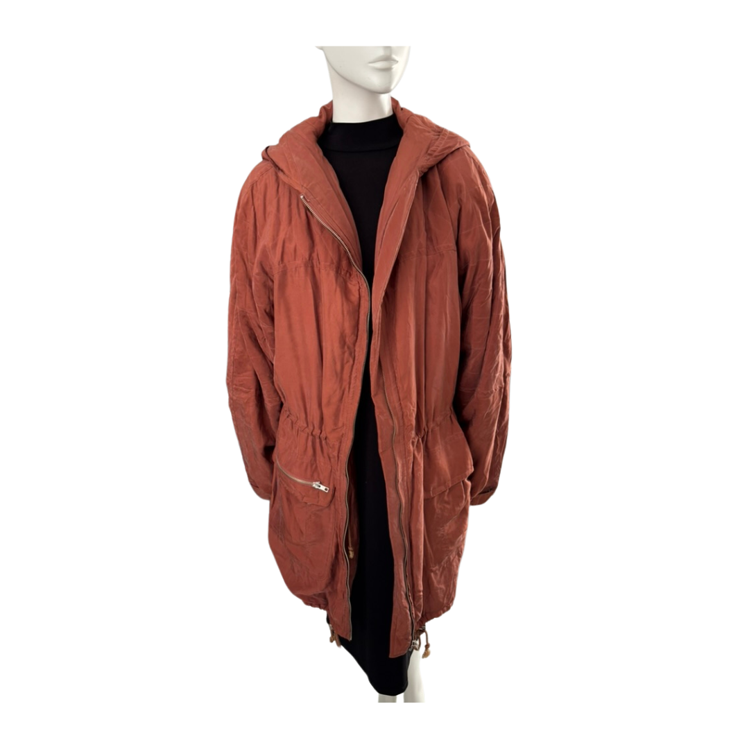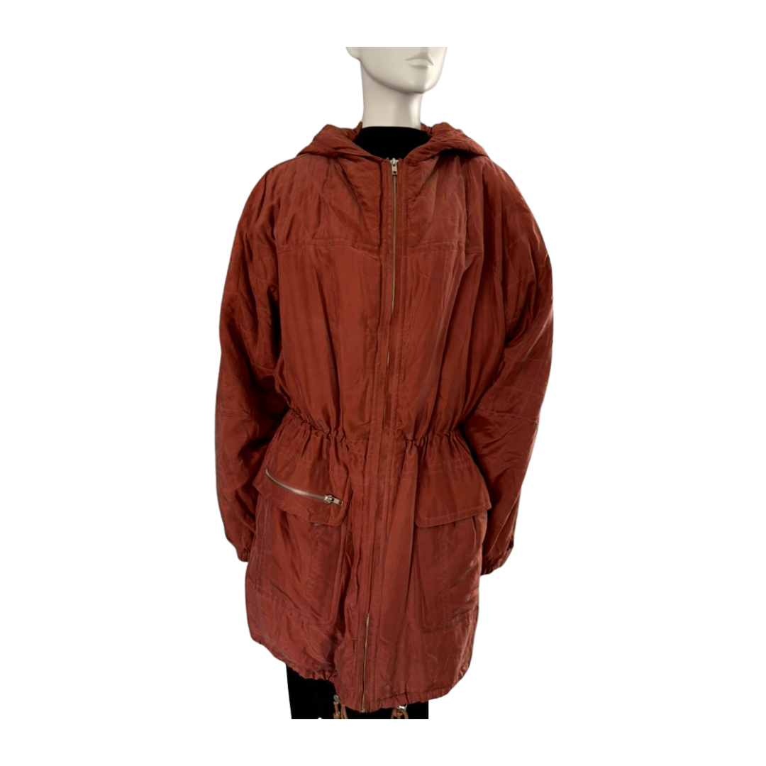 Oversized 80's Silk Hooded Parka Coat Brown Rust Size 12 - Vintage