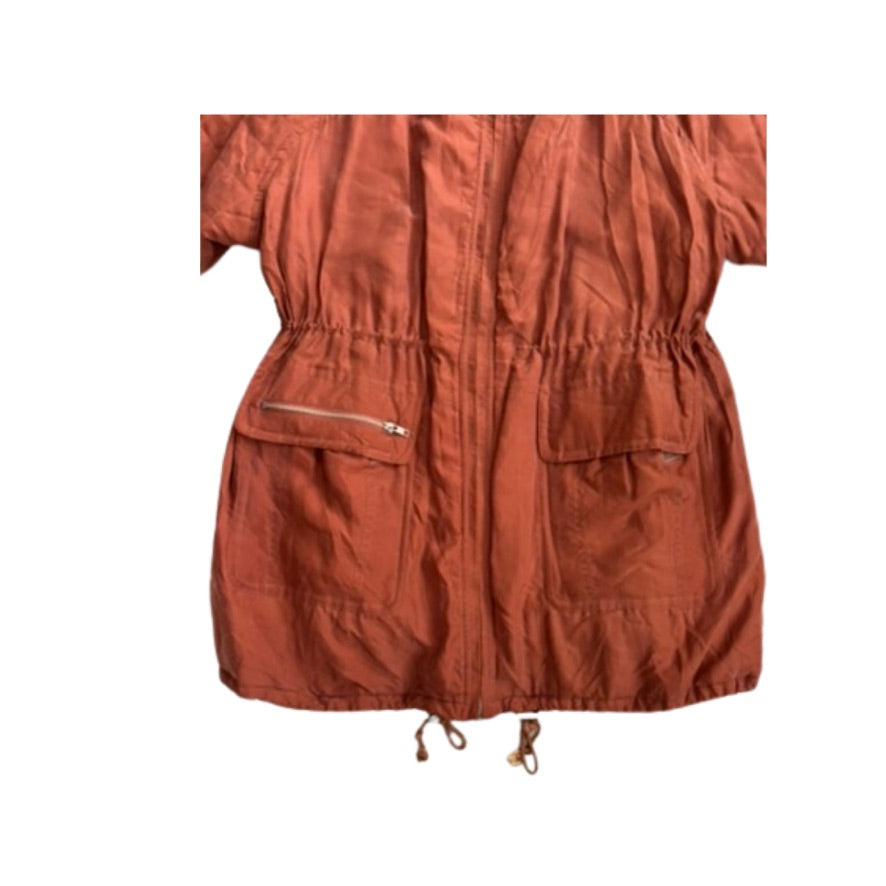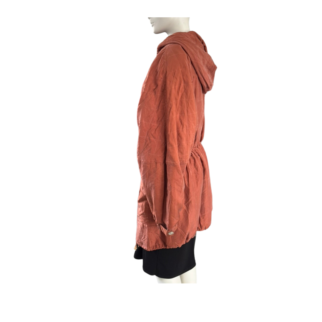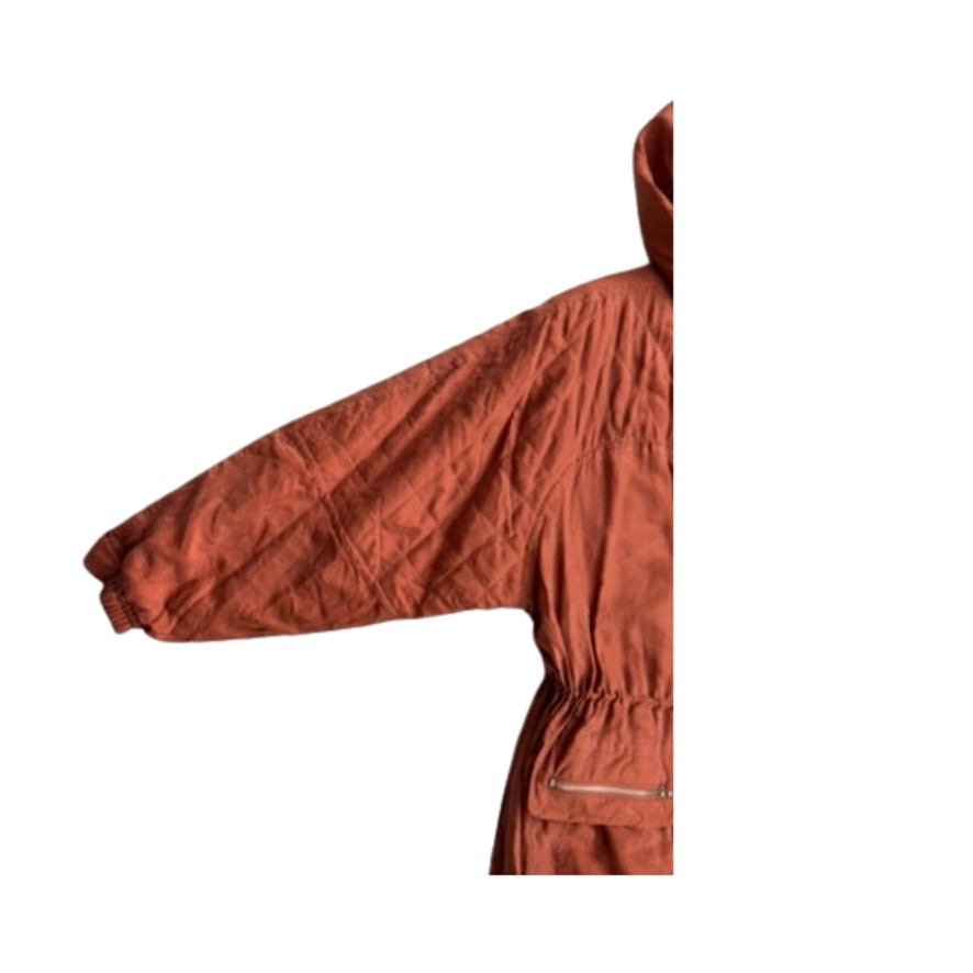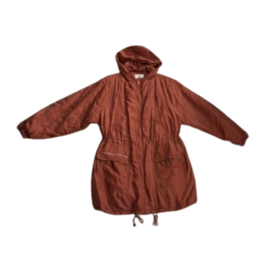 Oversized 80's Silk Hooded Parka Coat Brown Rust Size 12 - Vintage