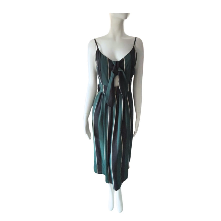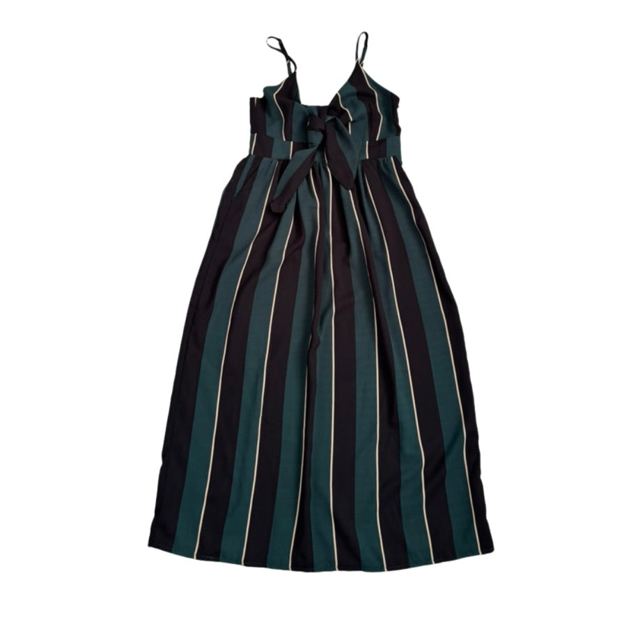 Tie-Front Stripe Midi Dress Green Black Size S - Preloved