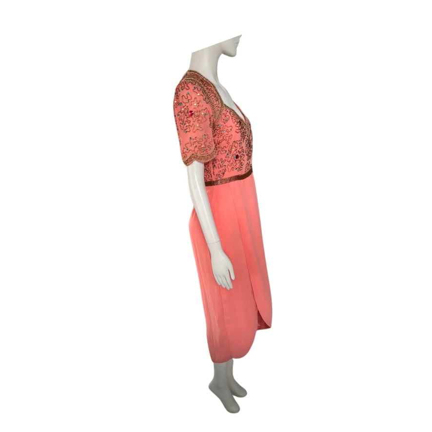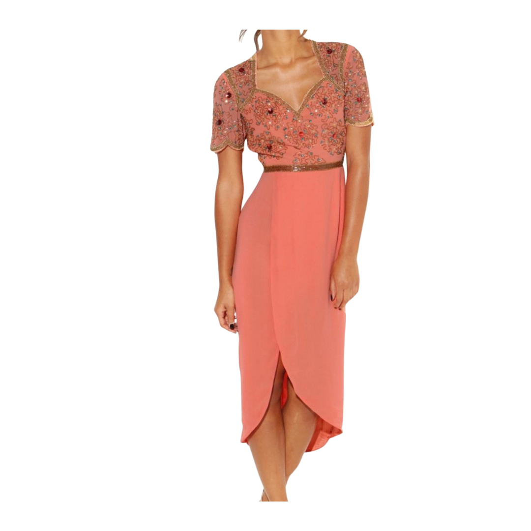 Virgos Lounge Embellished Midi Dress Coral Size 10 - Preloved