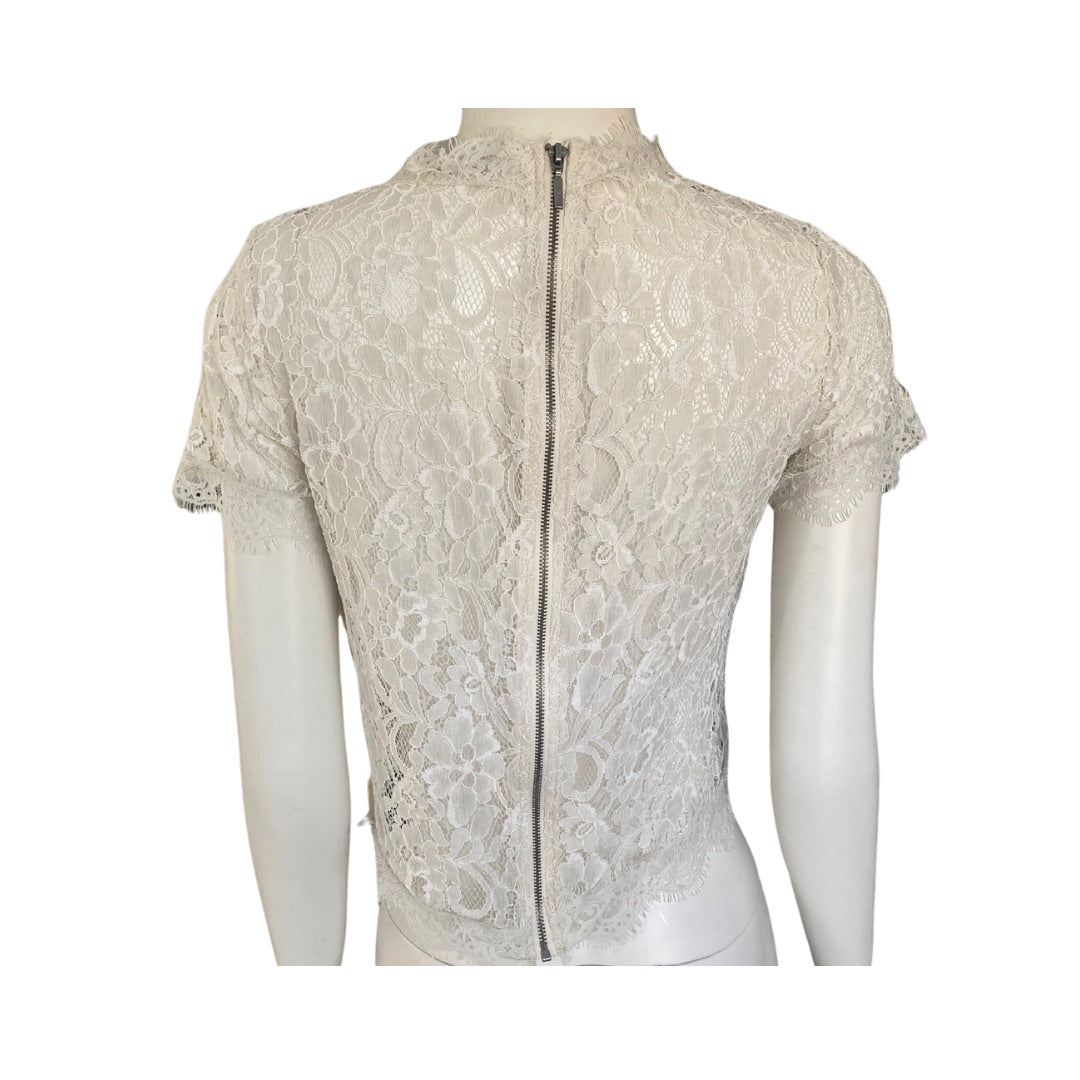 Zara Embroidered Front Lace Crop Top Cream SIZE S- Preloved