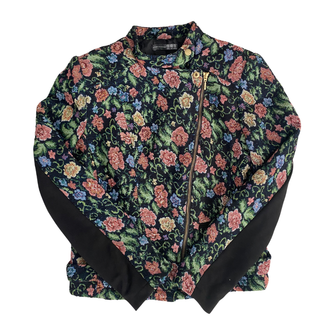 Tapestry Biker Jacket Black Multicolour SIZE 12