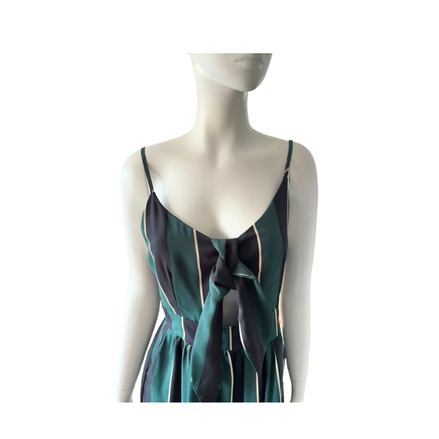 Tie-Front Stripe Midi Dress Green Black Size S - Preloved