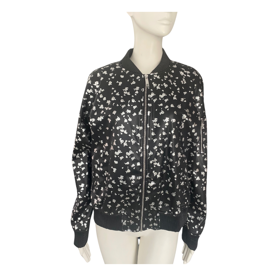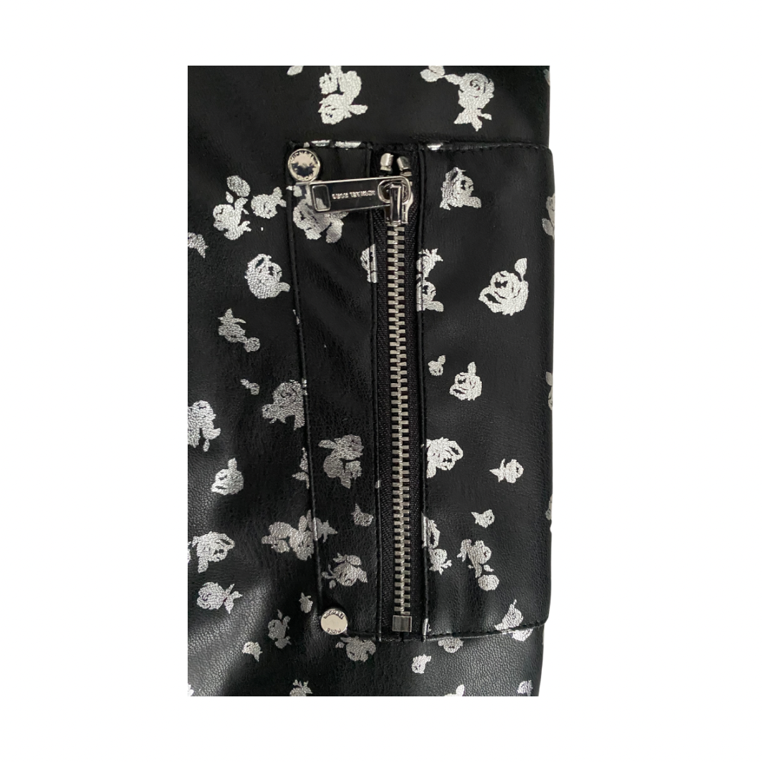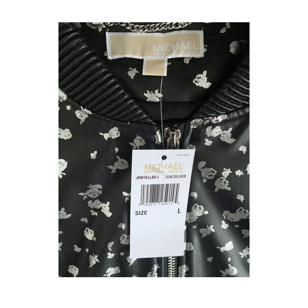 MICHAEL KORS Floral PU Bomber Jacket Black Silver SIZE L - New