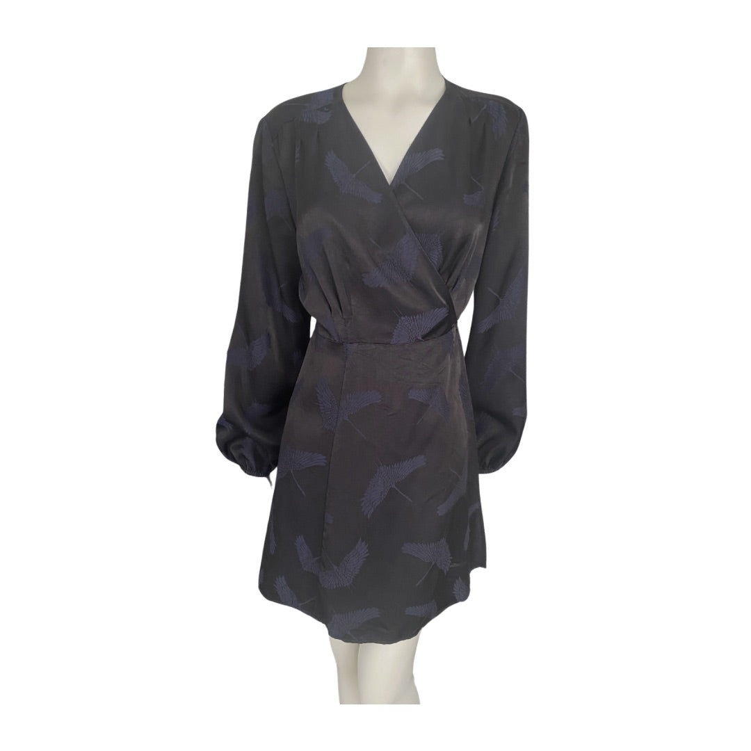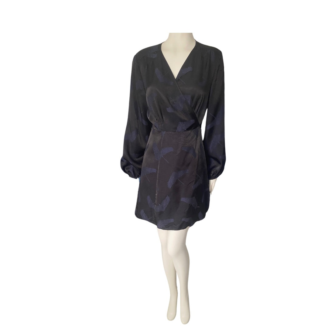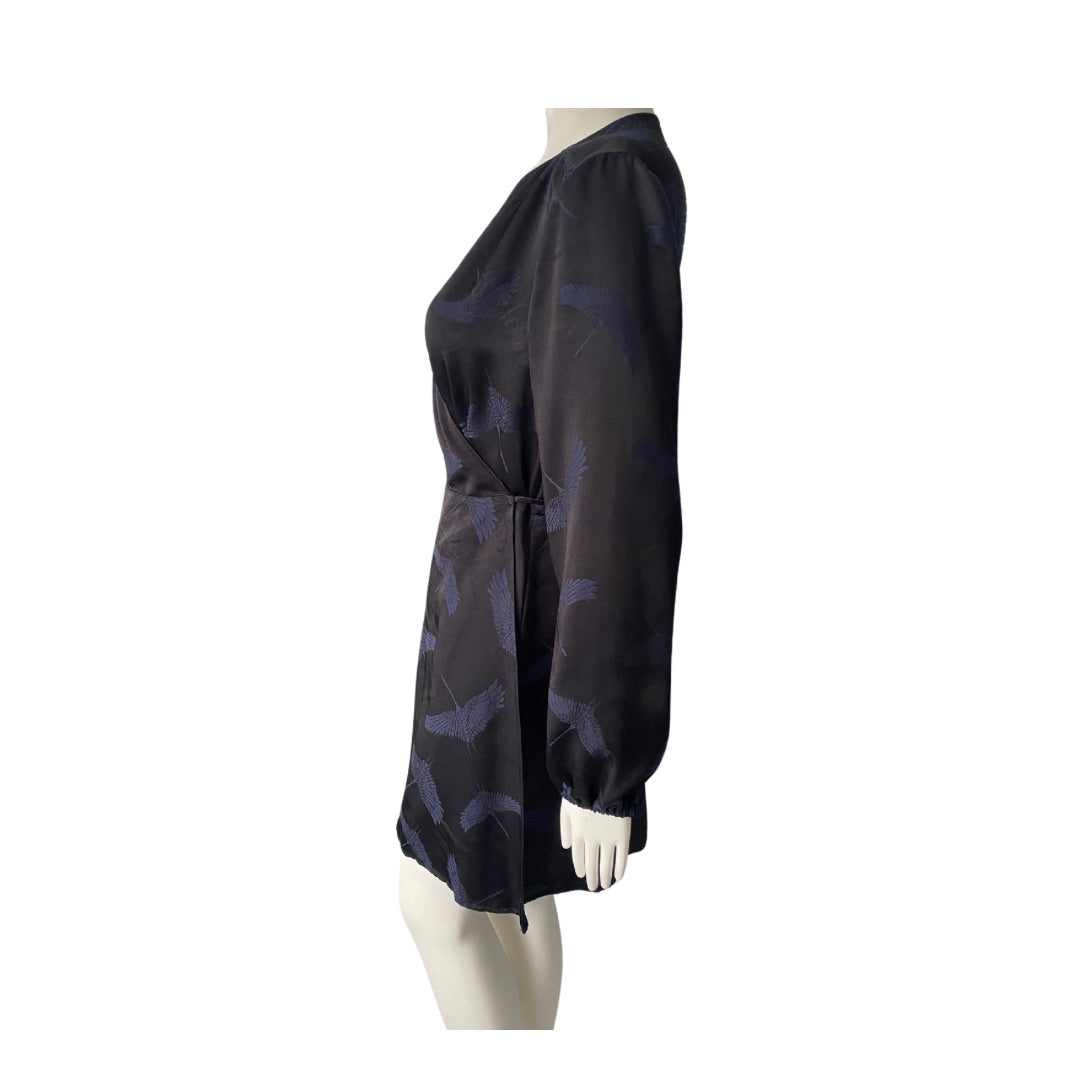 Short Satin Wrap Dress Black SIZE 14