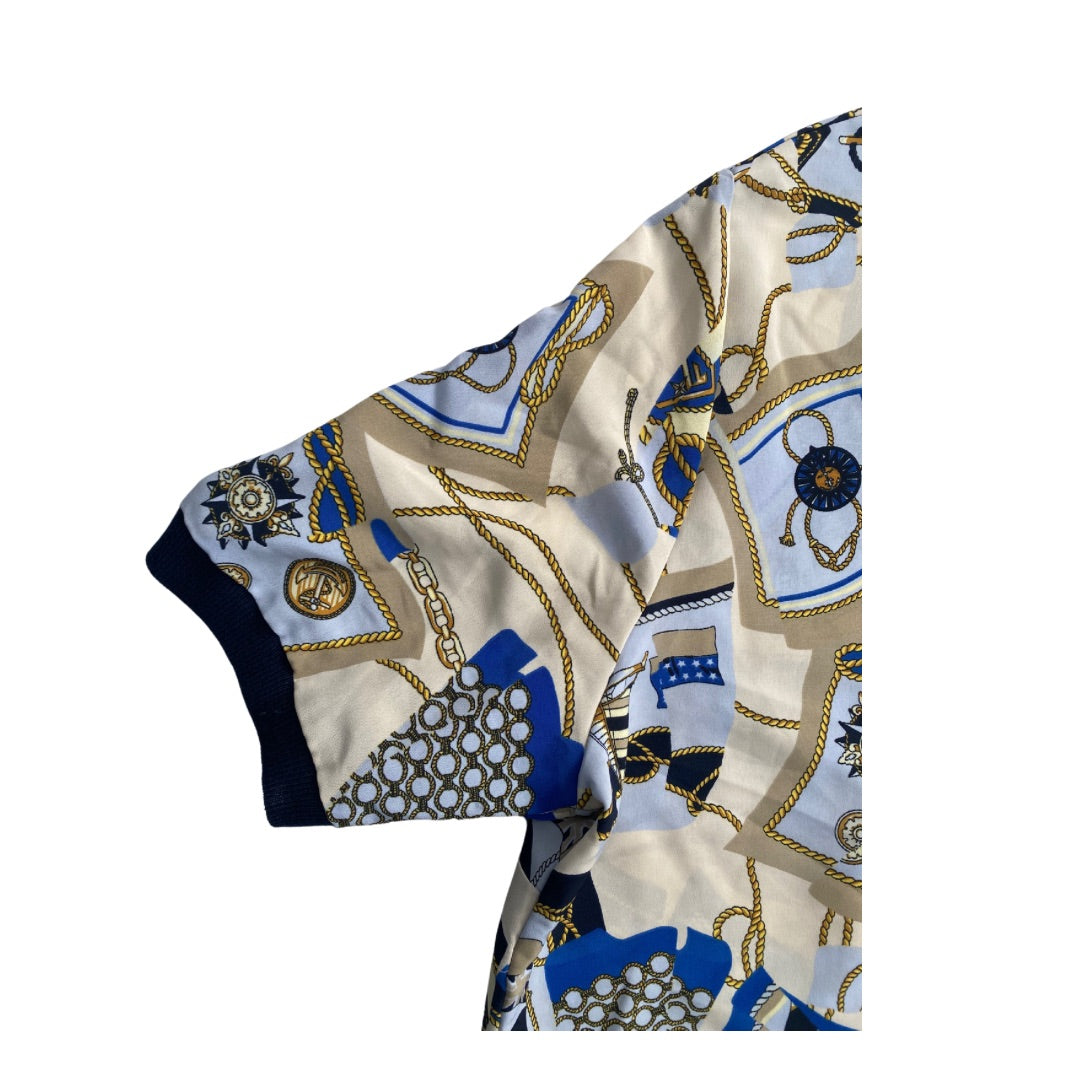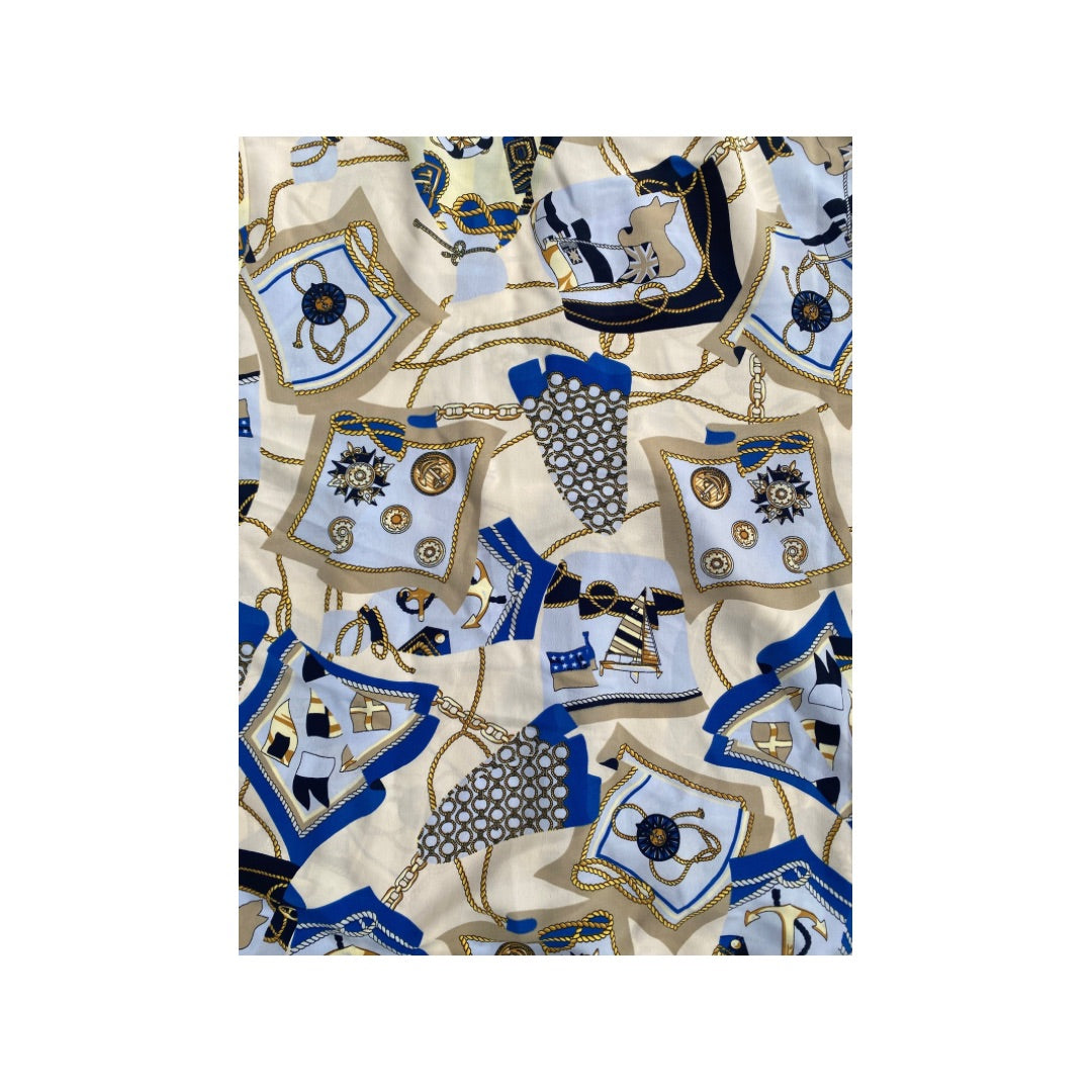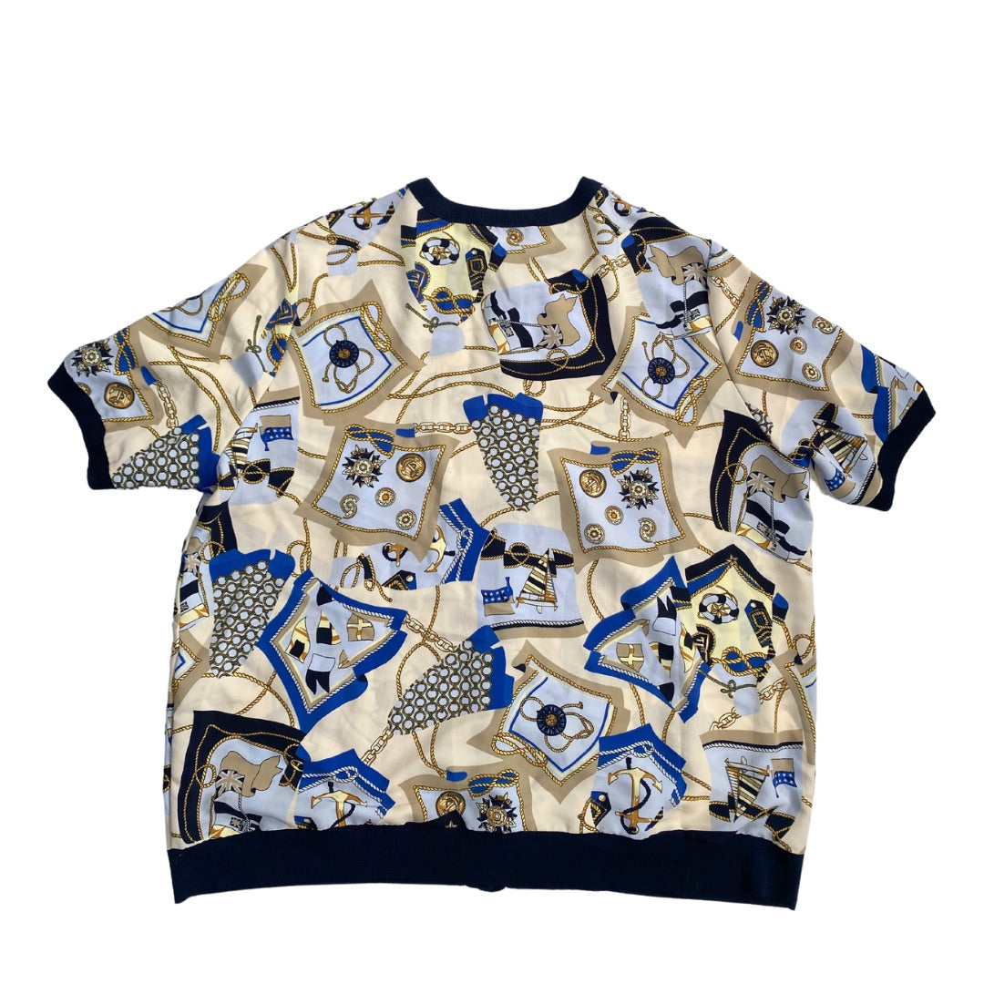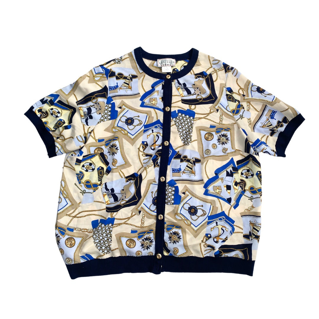 Nautical Print Scarf Cardigan Cream SIZE 16 - Vintage
