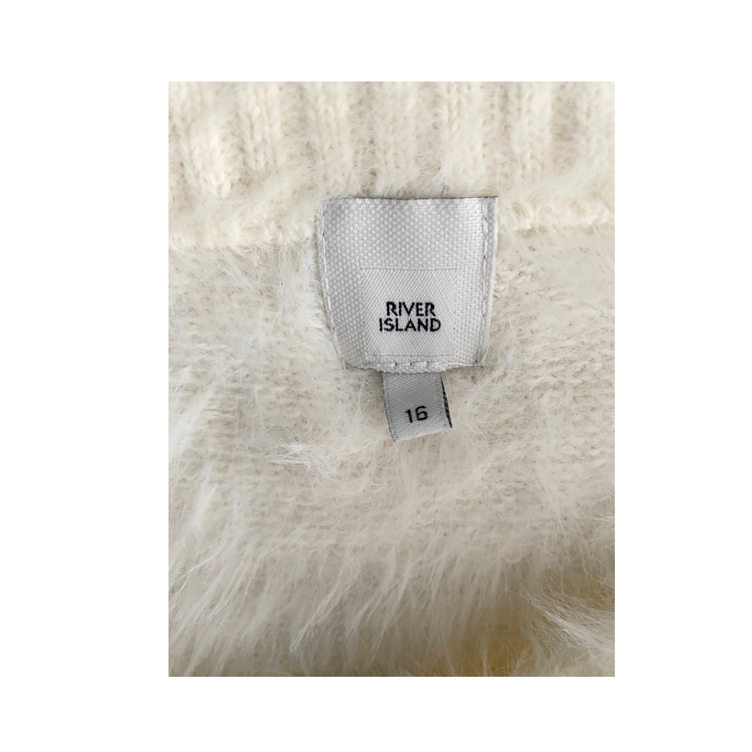 River Island Off-Shoulder Fluffy Jumper Cream SIZE 16