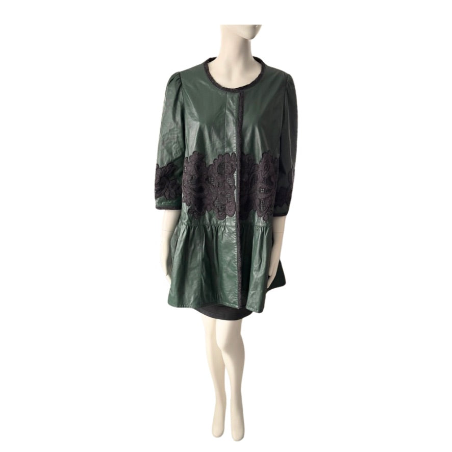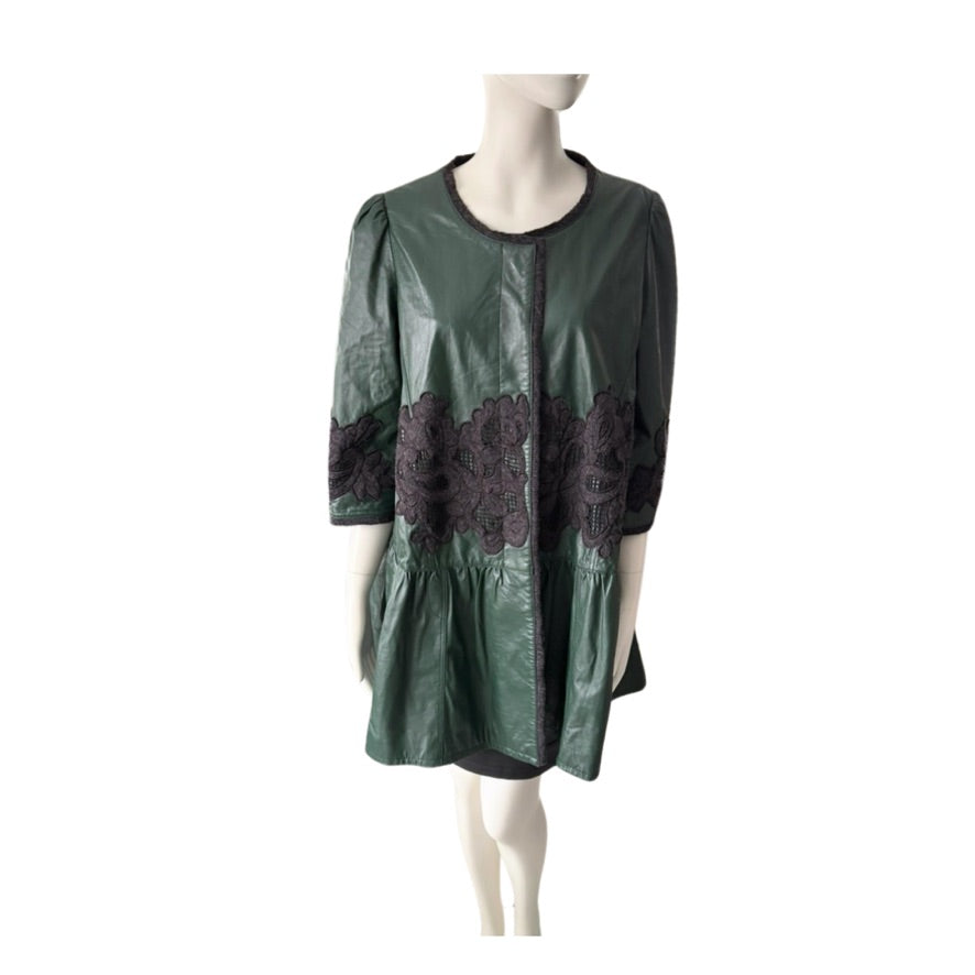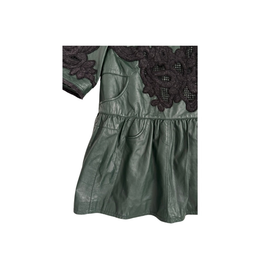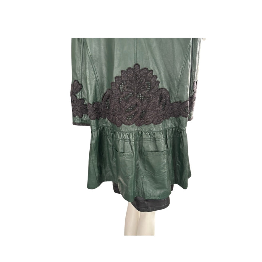 Leather Appliqué Swing Coat Green Size XL - Preloved