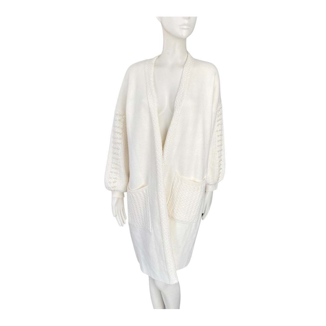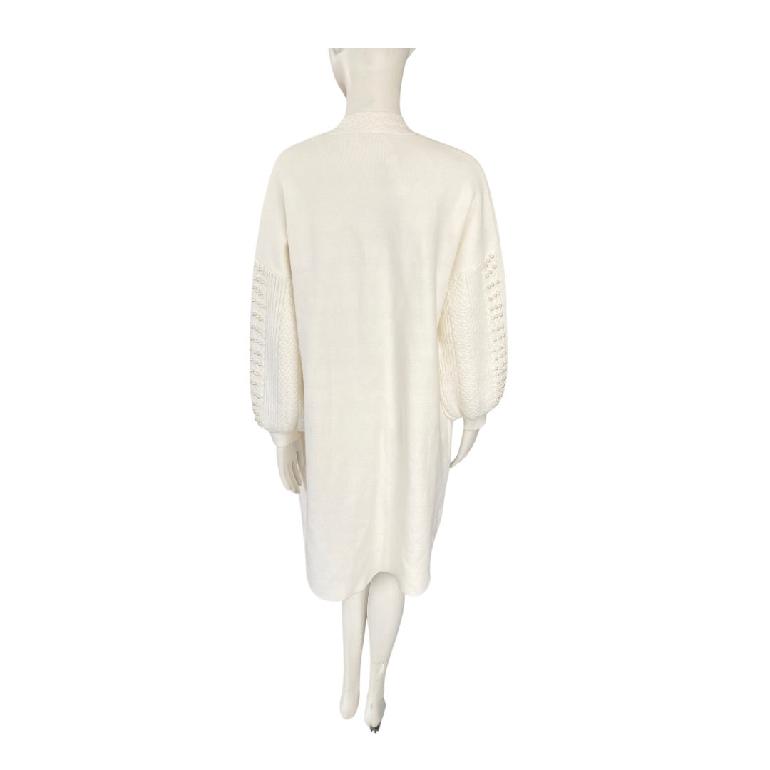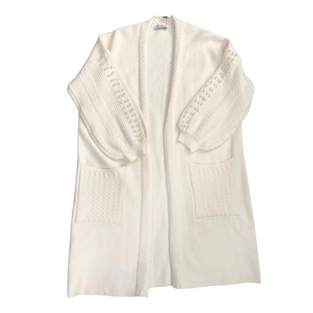 Gallery Pearl Sleeve Long Knit Cardigan Cream SIZE XL - New