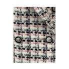 This Zara checked tweed jacket is a timeless wardrobe staple with a modern twist. Woven in shades of cream, black, and blush pink, the textured fabric is accented with contrasting black velvet pocket flaps and lapels for a polished finish. Double-breasted with metallic buttons, it brings Parisian-inspired tailoring into everyday wear. Crafted from a cotton blend, this pre-loved jacket is versatile enough to dress up workwear or layer casually with denim.