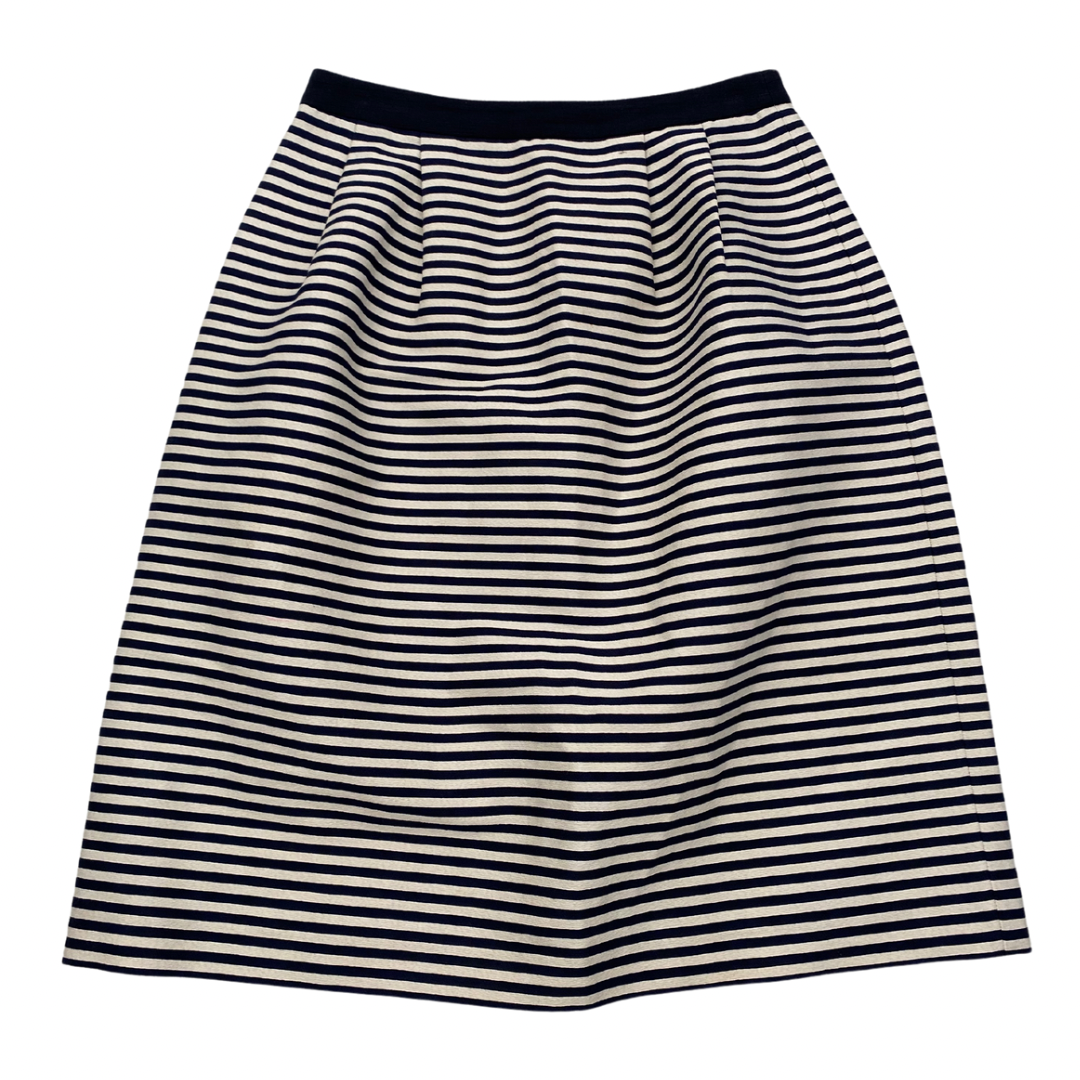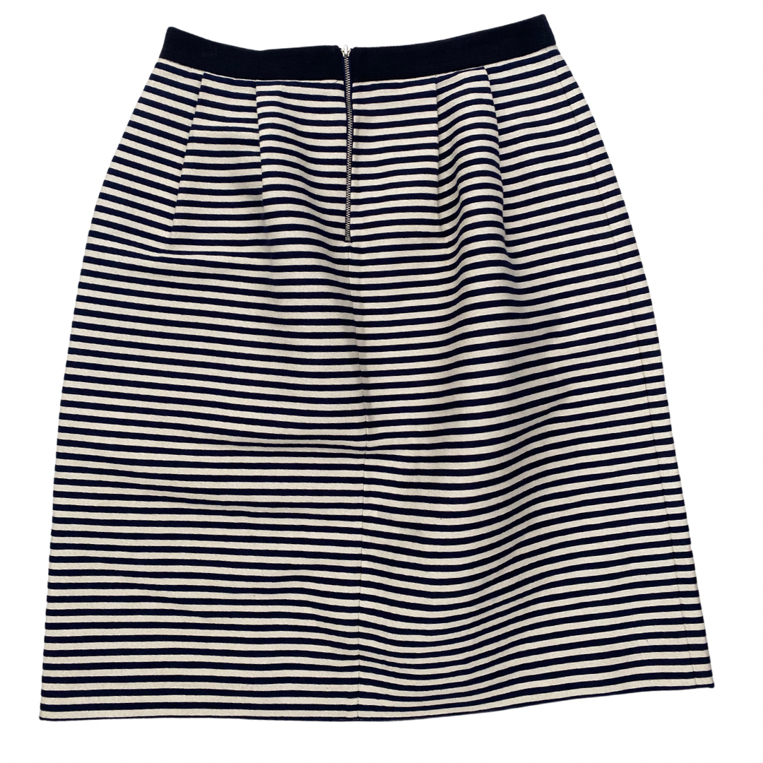This navy and cream striped skirt takes classic nautical vibes and gives them a modern twist. The clean lines of the stripes are punctuated by gentle pleating, offering just the right amount of volume to create a flattering silhouette. Perfect for both casual outings and more formal affairs, this skirt pairs beautifully with a crisp white shirt or a simple tee for a chic, effortless look. Add your favourite pair of loafers or heels to complete an ensemble that feels as stylish as it does timeless.